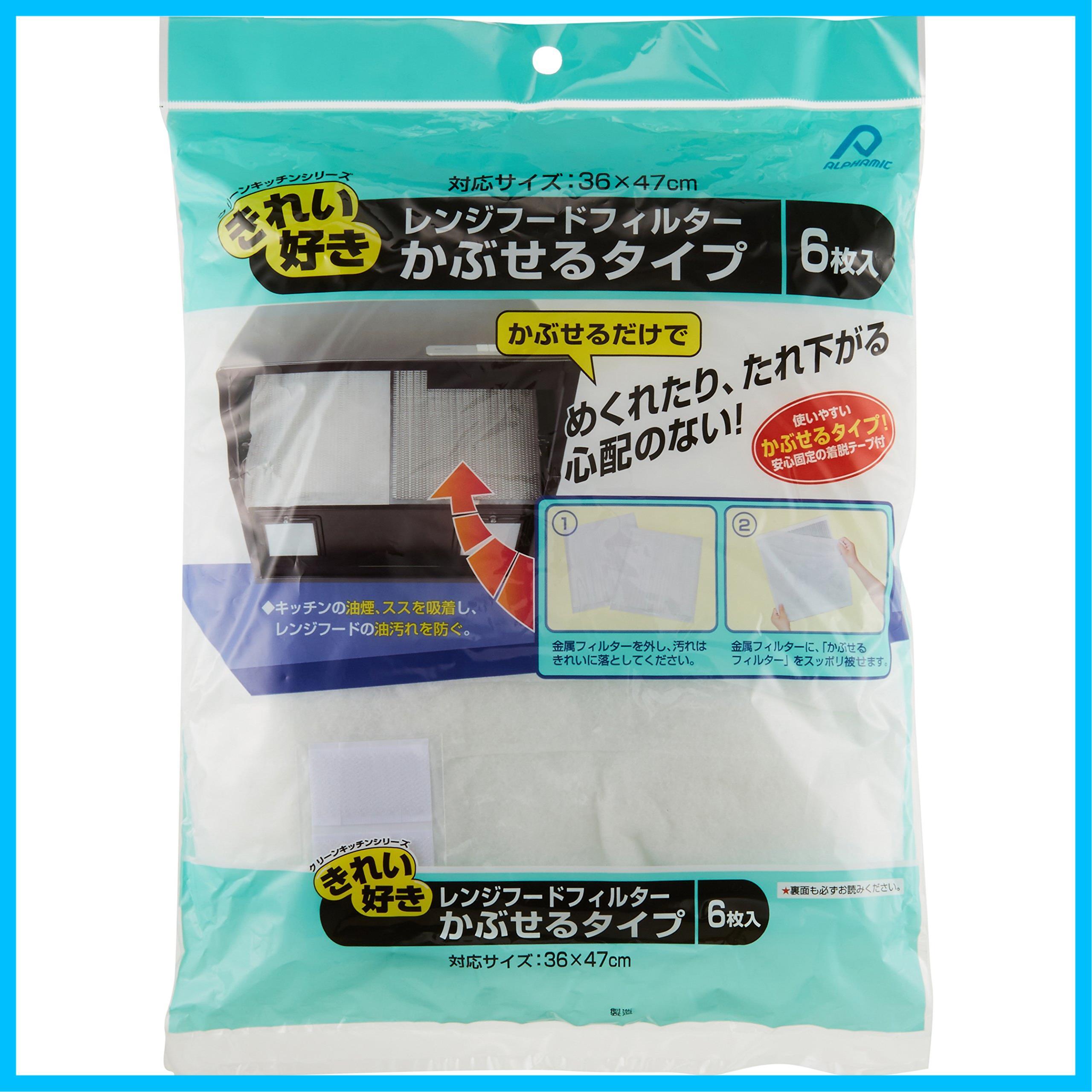 アルファミック レンジフードフィルター 被せるタイプ ホワイト 約幅36×高さ47cm 油汚れを防ぐ お掃除ラクラク 着脱テープ付 6枚入