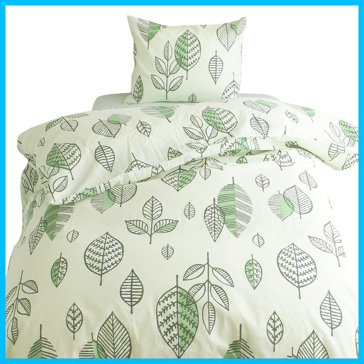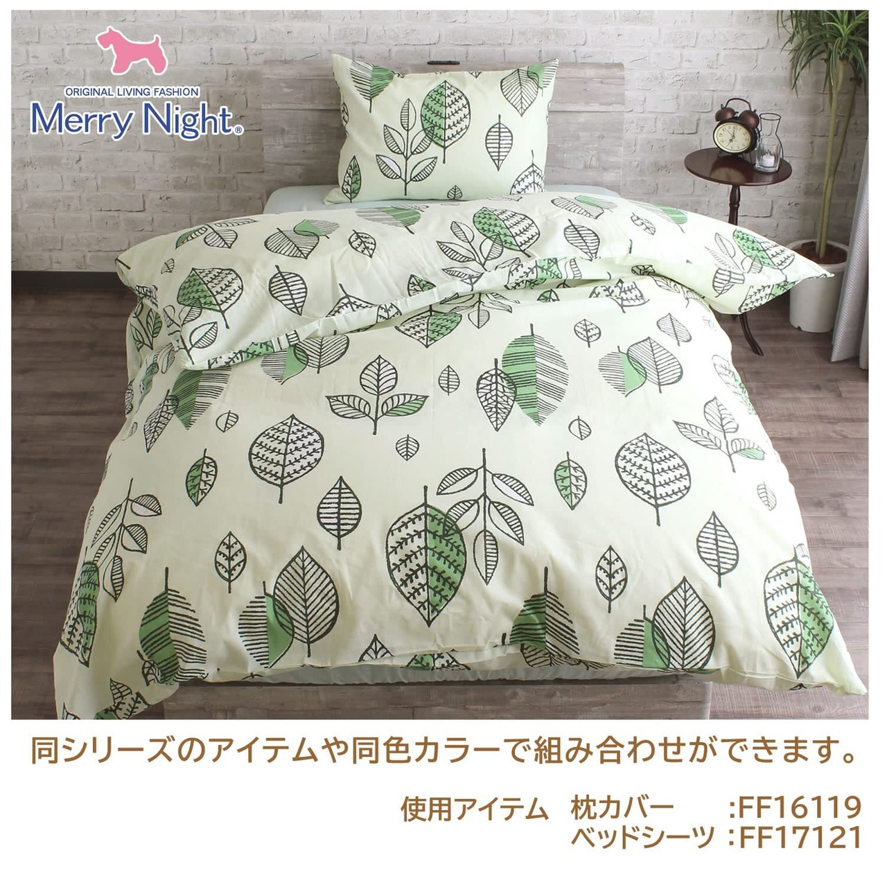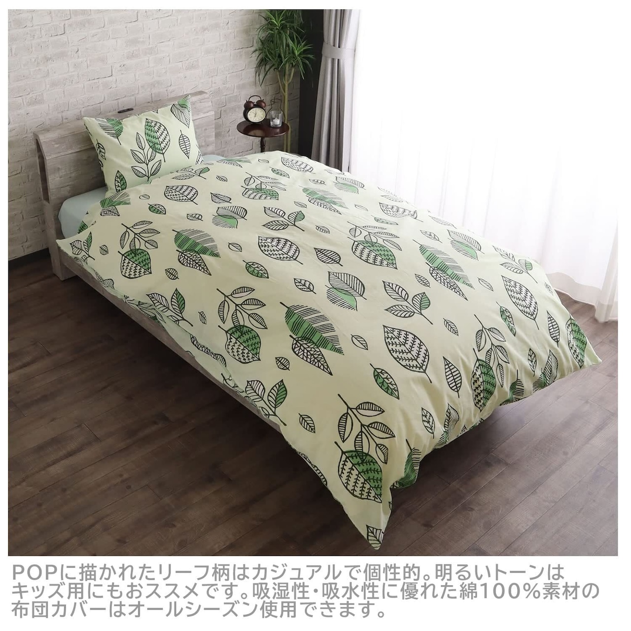 メリーナイト(Merry Night) 掛け布団カバー 「ナチュラルリーフ」 グリーン シングルロング 約150×210cm 両サイドファスナー ふとんが入れやすい 綿100% オールシーズン 洗える FF12119-53