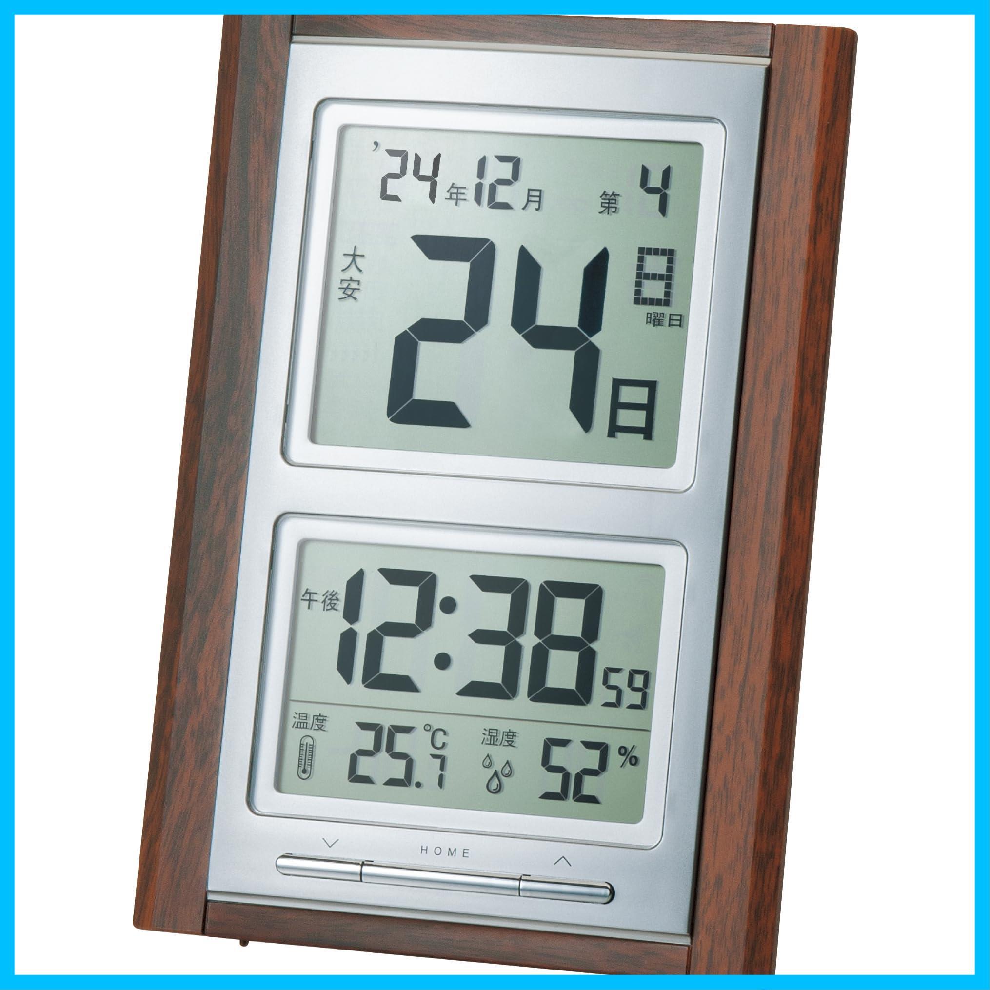 ADESSO(アデッソ) 日めくり電波時計 デジタル 置き掛け兼用 六曜 温度 湿度 日付 曜日表示 記念日設定機能付き 木目調 ブラウン NAR-102