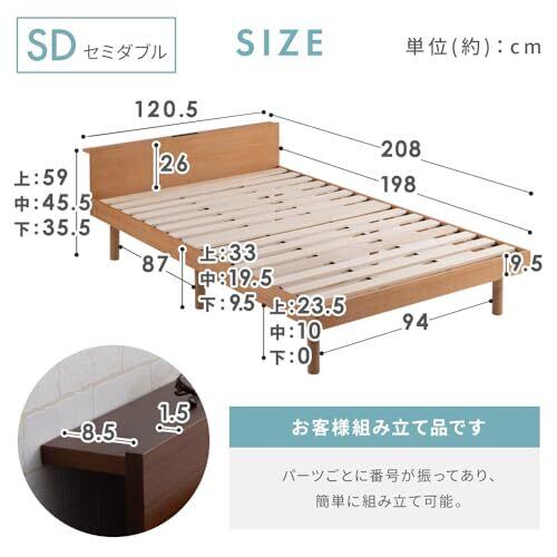 商品サイズ(cm):幅約120.5×奥行約208×高さ約35.5~59(セミダブルサイズ)