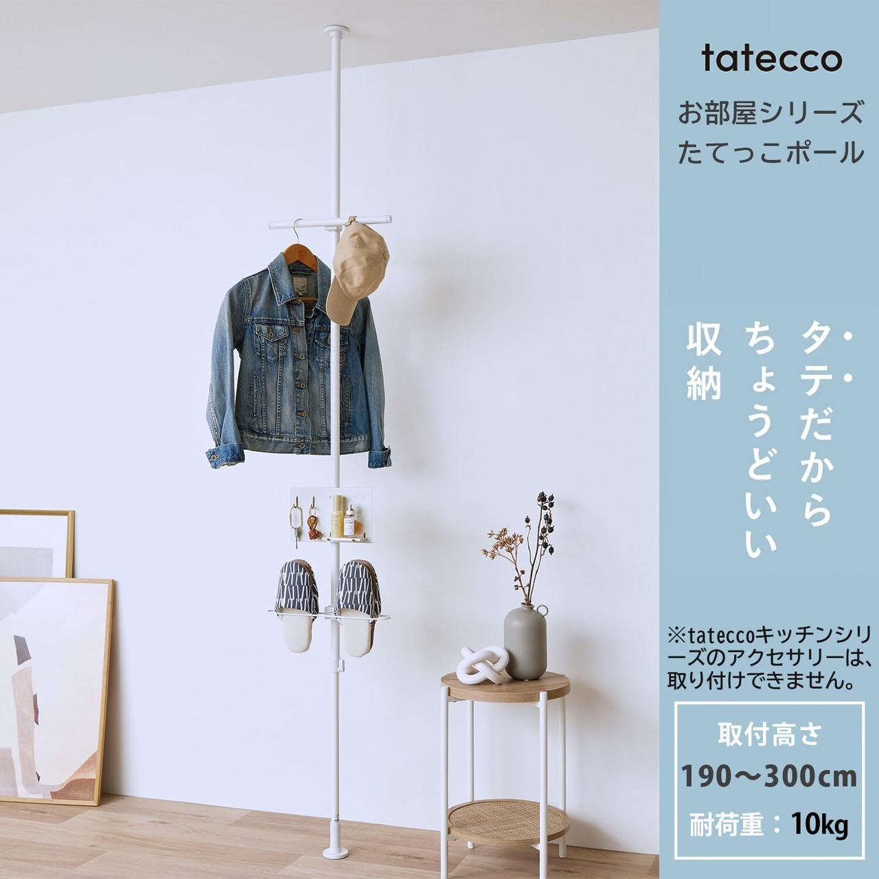 "タテだから1本で思いのまま” 1本のつっぱり棒で、リビングやお部屋、玄関にぴったりの収納スペースを作れるtateccoお部屋シリーズの縦つっぱり棒です。