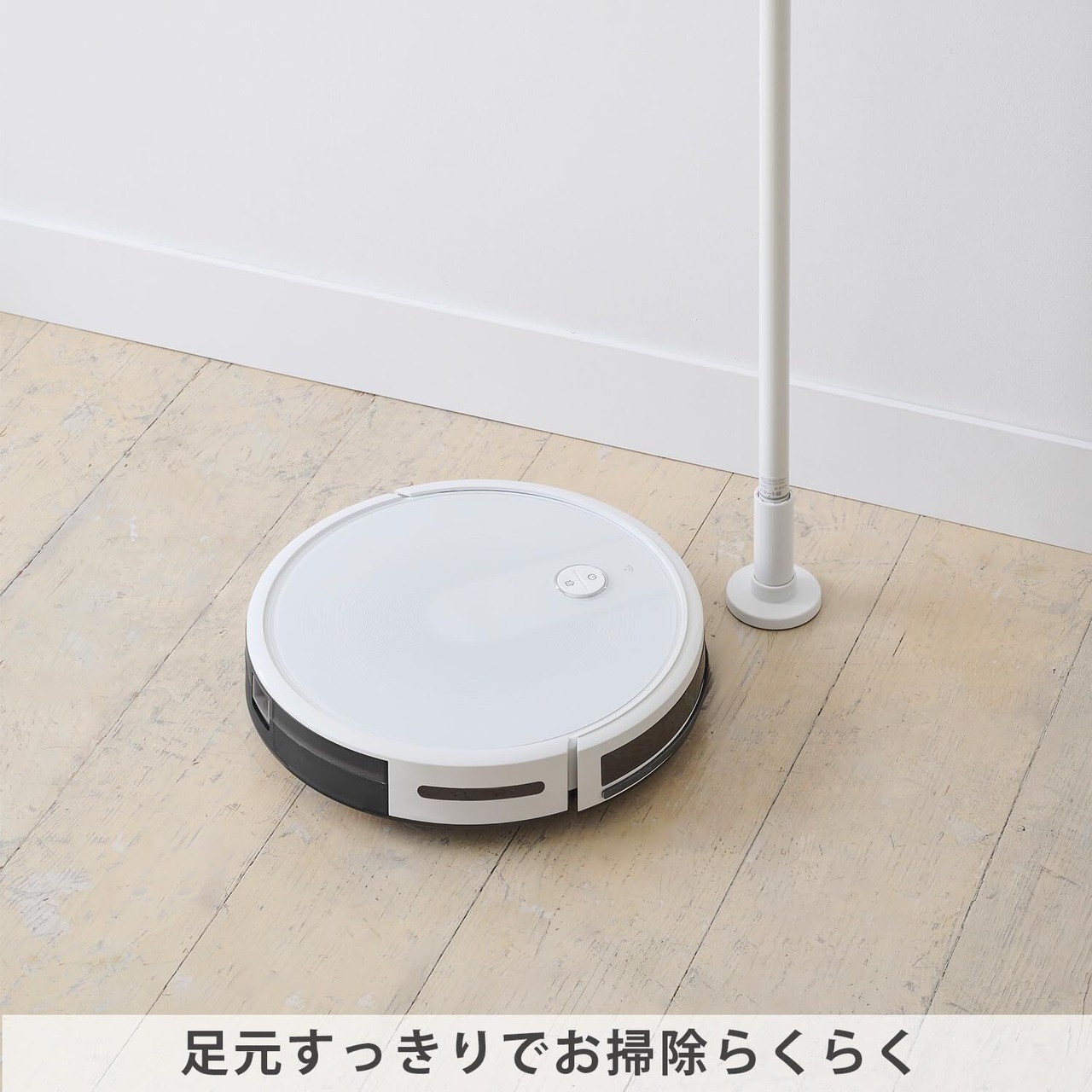 縦1本だから省スペース。部屋の導線を邪魔しないスリムさです。足元すっきりで掃除もらくらく。