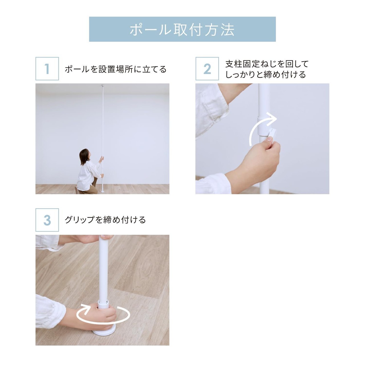 【サイズ】幅7×奥行7×高さ190~300cm【耐荷重】10kg【本体重量】1.3kg【カラー】マットホワイト