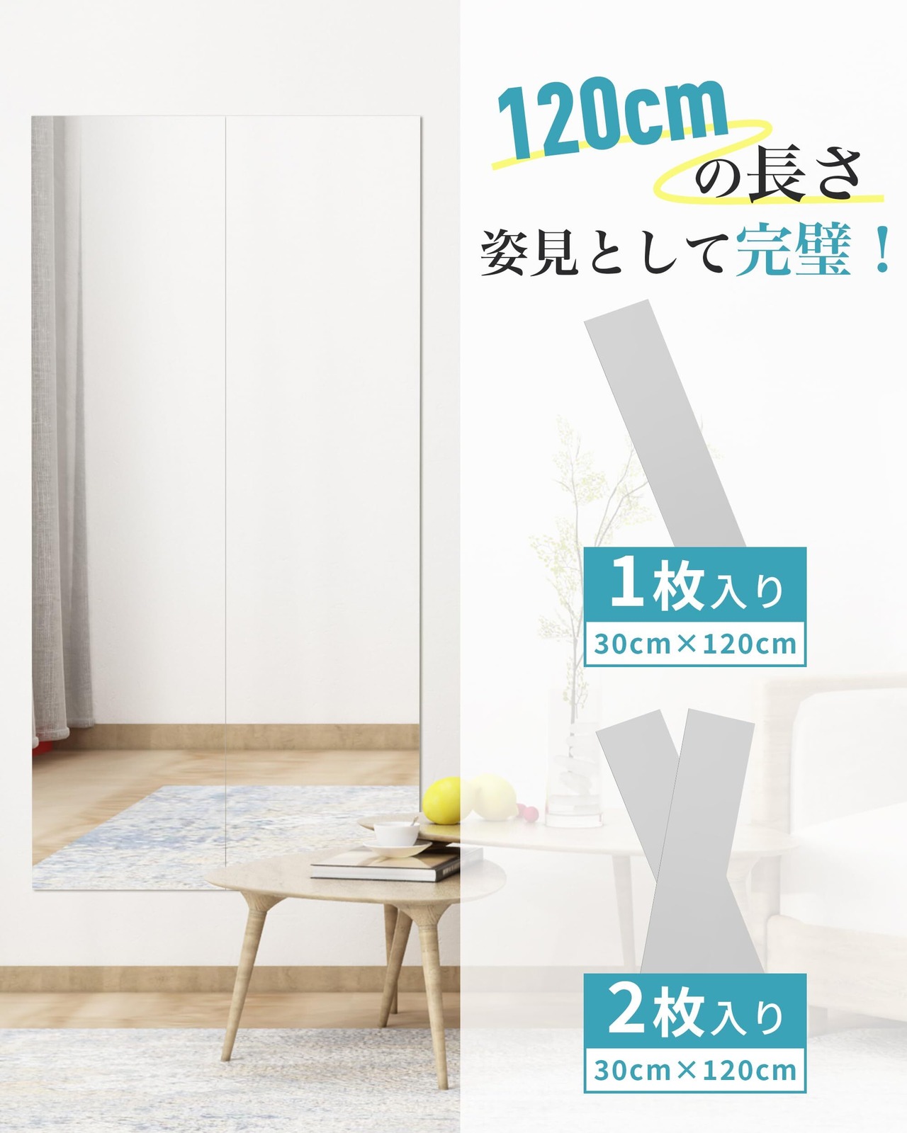 【数量限定】【 限定】 アイクラシ(Ikurashi) 【割れない鏡】 どこでも貼れる 鏡 姿見 全身鏡 壁掛け 貼る鏡 壁掛け鏡 壁に貼る鏡 ミラー 超軽量 浴室 玄関 ドアの裏やクローゼット 子供部屋 (30×120cm 1枚)
