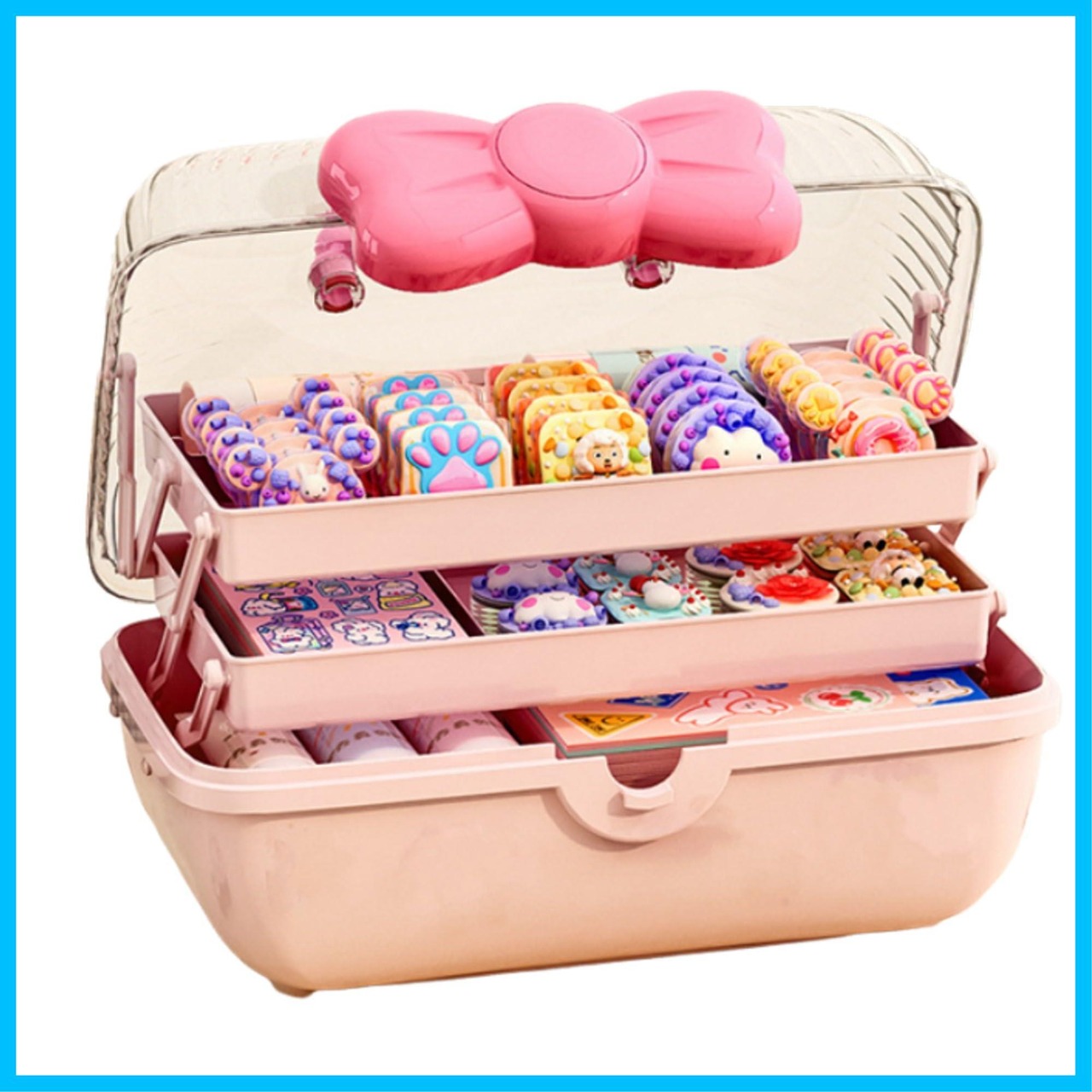 Asdays アクセサリー ケース ジュエリー収納 ボックス 小物入れ ヘアアクセサリー おもちゃ 子供用 宝石箱 ギフト 3段 (ピンク)