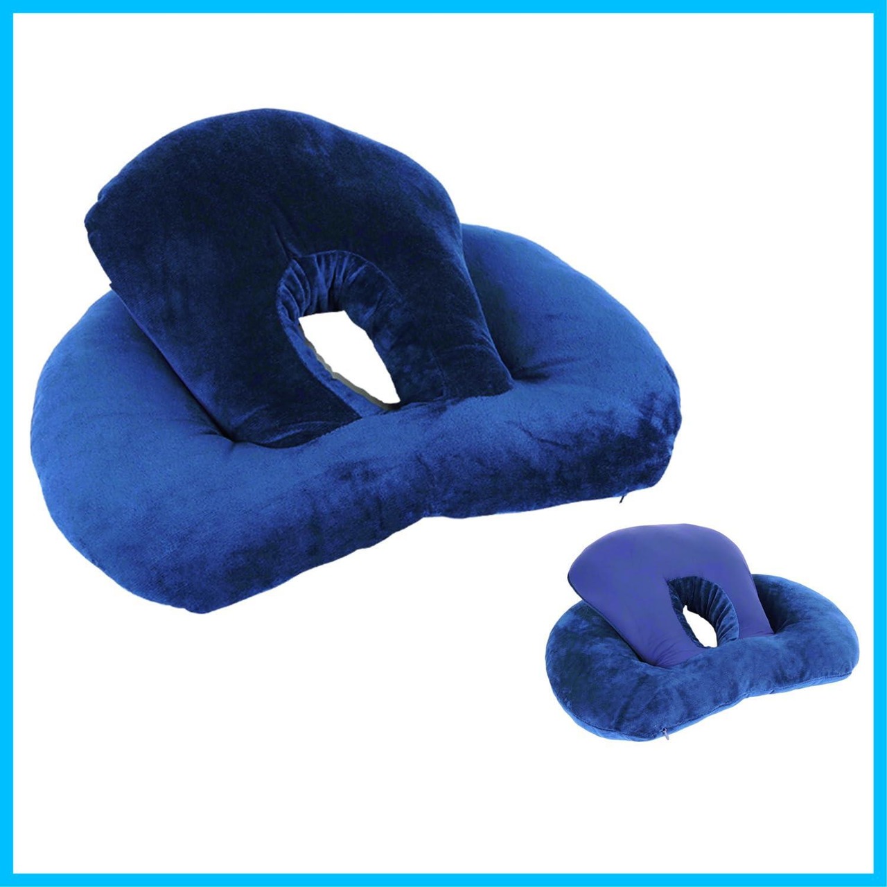 【特価セール】[Rocotto] うつぶせ寝 クッション 4way 顔圧軽減 ネックピロー 呼吸しやすい うつ伏せ枕 低反発 抱き枕 顔うずめ枕 リラックス 肩こり 首こり 施術用 寝落ちクッション 通気設計 男女兼用 (ネイビー)