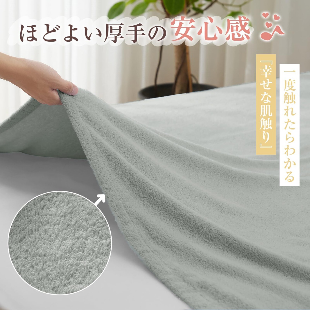 【長繊維天然綿100%】良質なオーガニックコットンを使用。2⁻3年以上、化学肥料や農薬を一切使用していない農場で栽培され、余計なものを一切使用していないので、赤ちゃんの敏感肌もしっかり守ります。通常より繊維長の長い高級原綿を厳選、パイルがぬけにくく、しなやかさを実現。素材にこだわる方におすすめのタオルケット/赤ちゃんやお肌のデリケートな方におすすめ。
