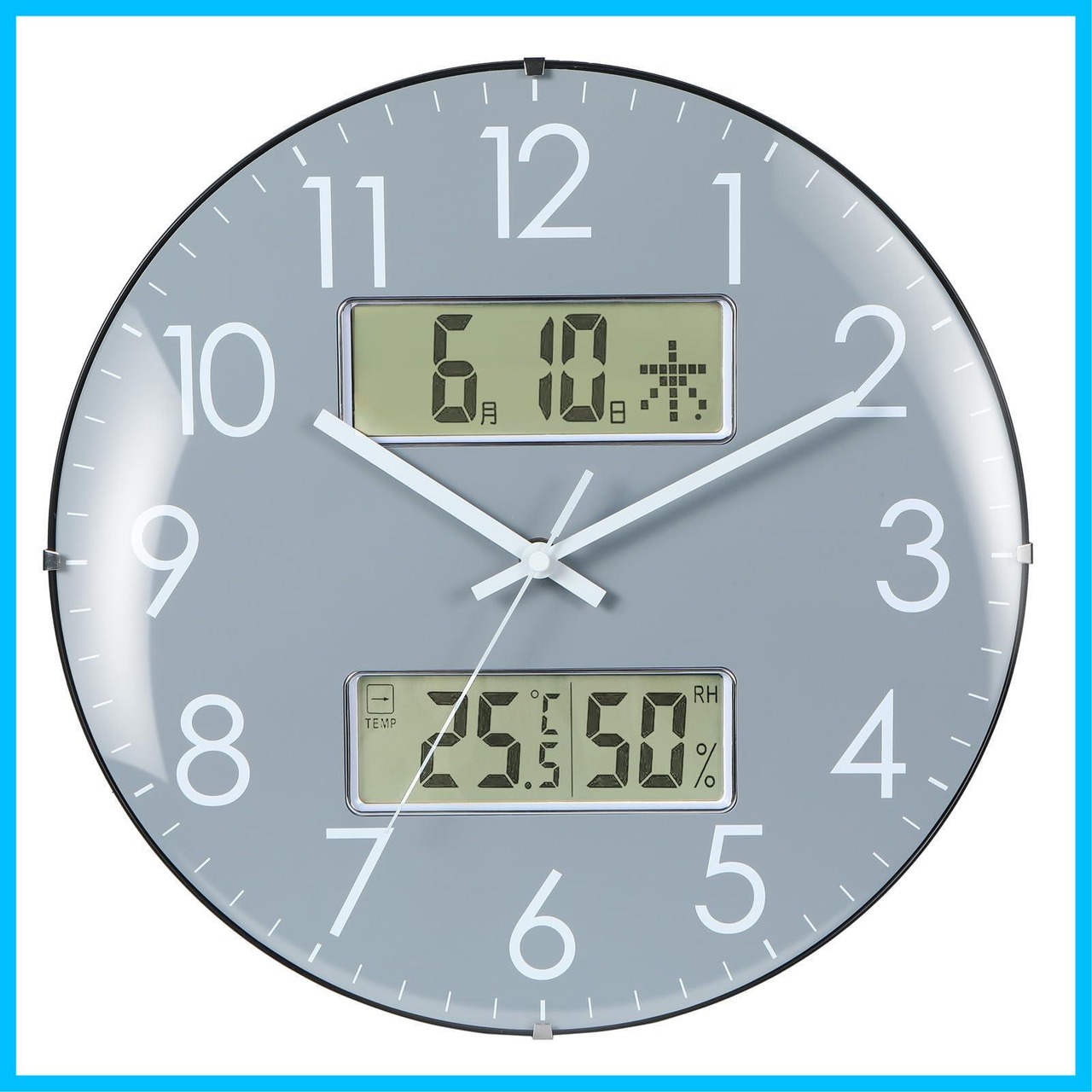 Nbdeal 掛け時計 電波時計 温度 湿度 日付 曜日表示 直径33.5cm アナログ 夜間秒針停止機能付き 静音 球面ガラス SYJ-78954 グレー