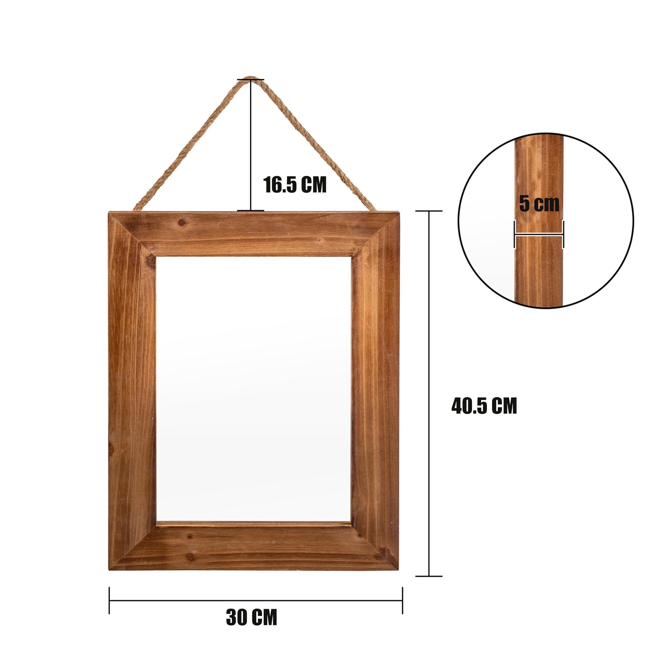 ウォールミラー、ブラウンウォールミラー、長方形ミラー、家具ミラー、壁掛けアンティークバスルームバニティミラーファームハウスウォールミラーブラウン長方形アンティークウッドミラー40X30cm装飾木製フレーム、ミラーと吊り紐付き吊り下げミラーバスルームベッドルームエントランス化粧台テーブルウォールミラー