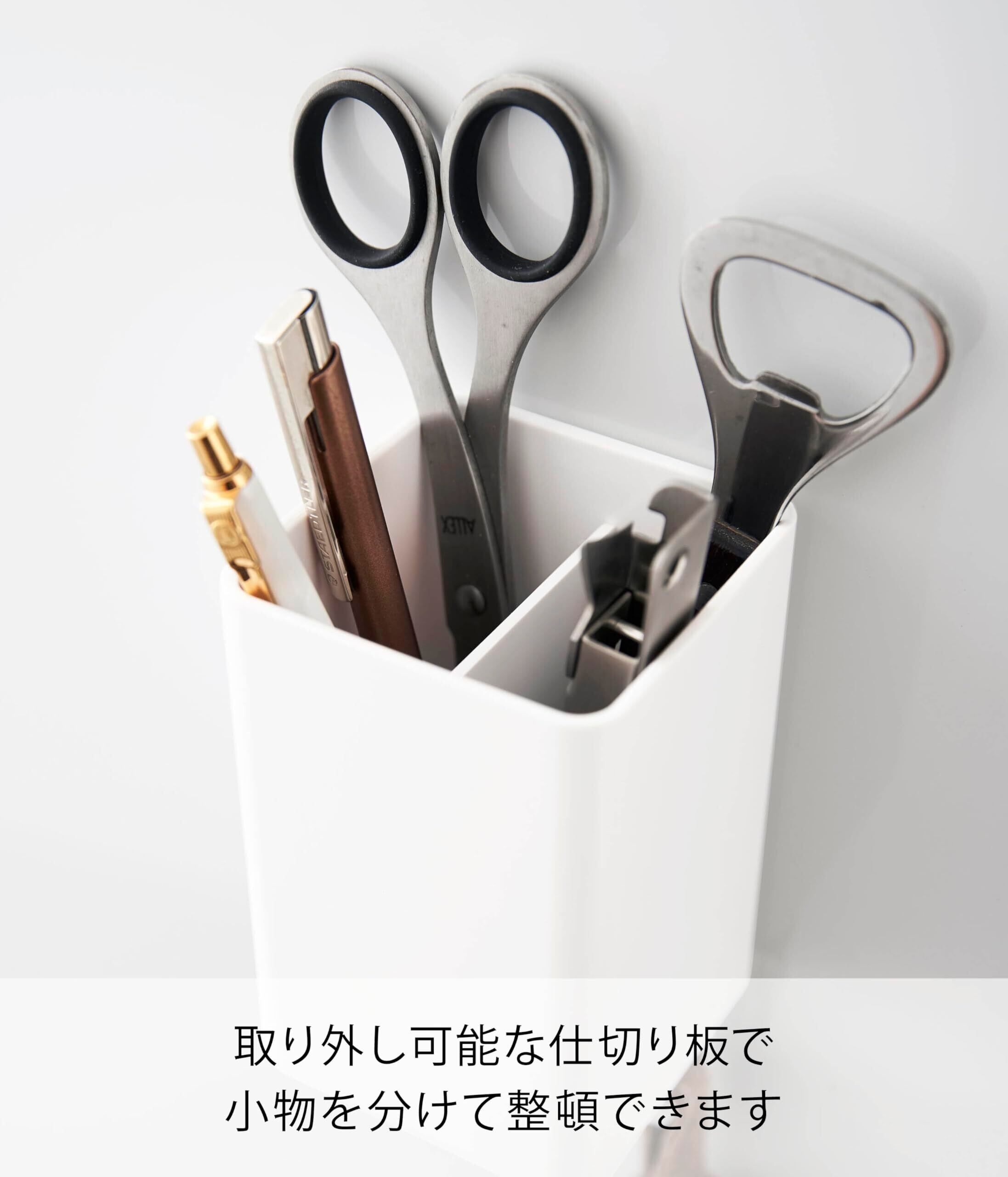 山崎実業(Yamazaki) マグネットストレージボックス スクエア ホワイト 約W7XD7.2XH10.5cm タワー tower 小物収納 仕切りあり フック付き 4848