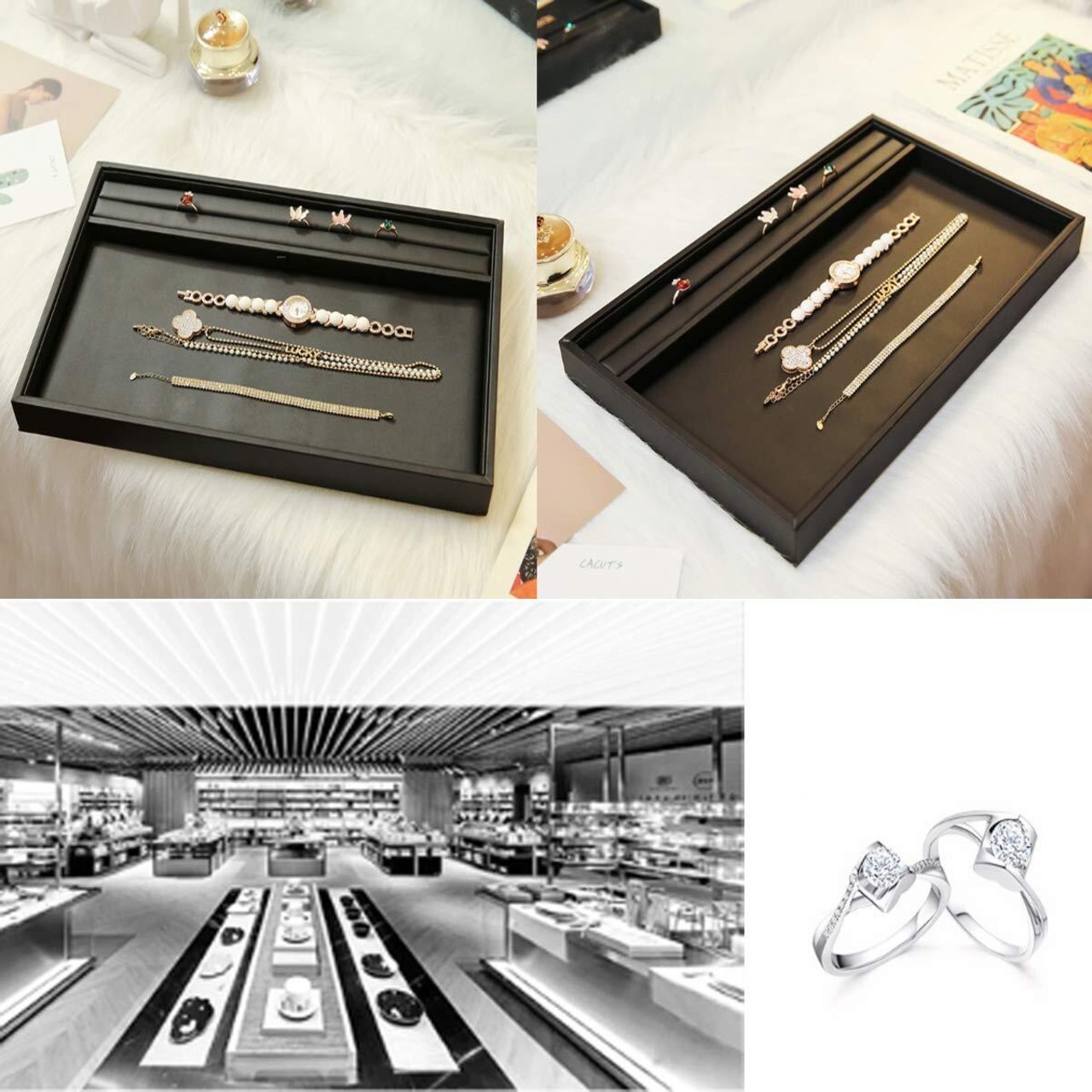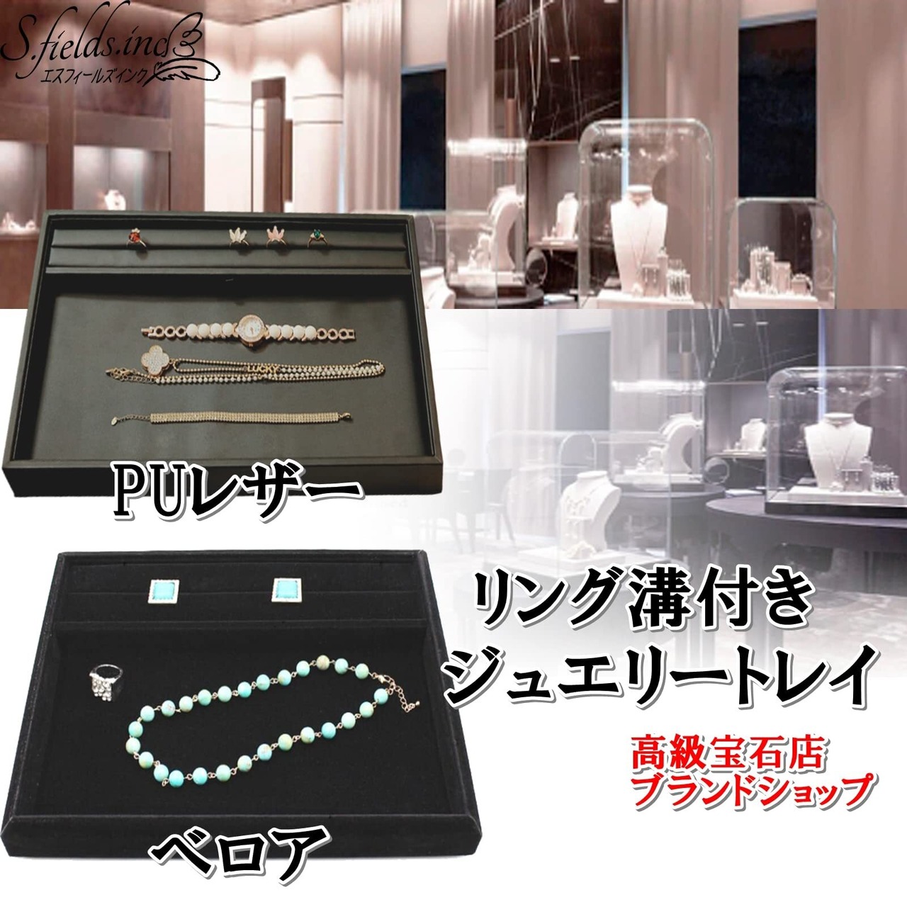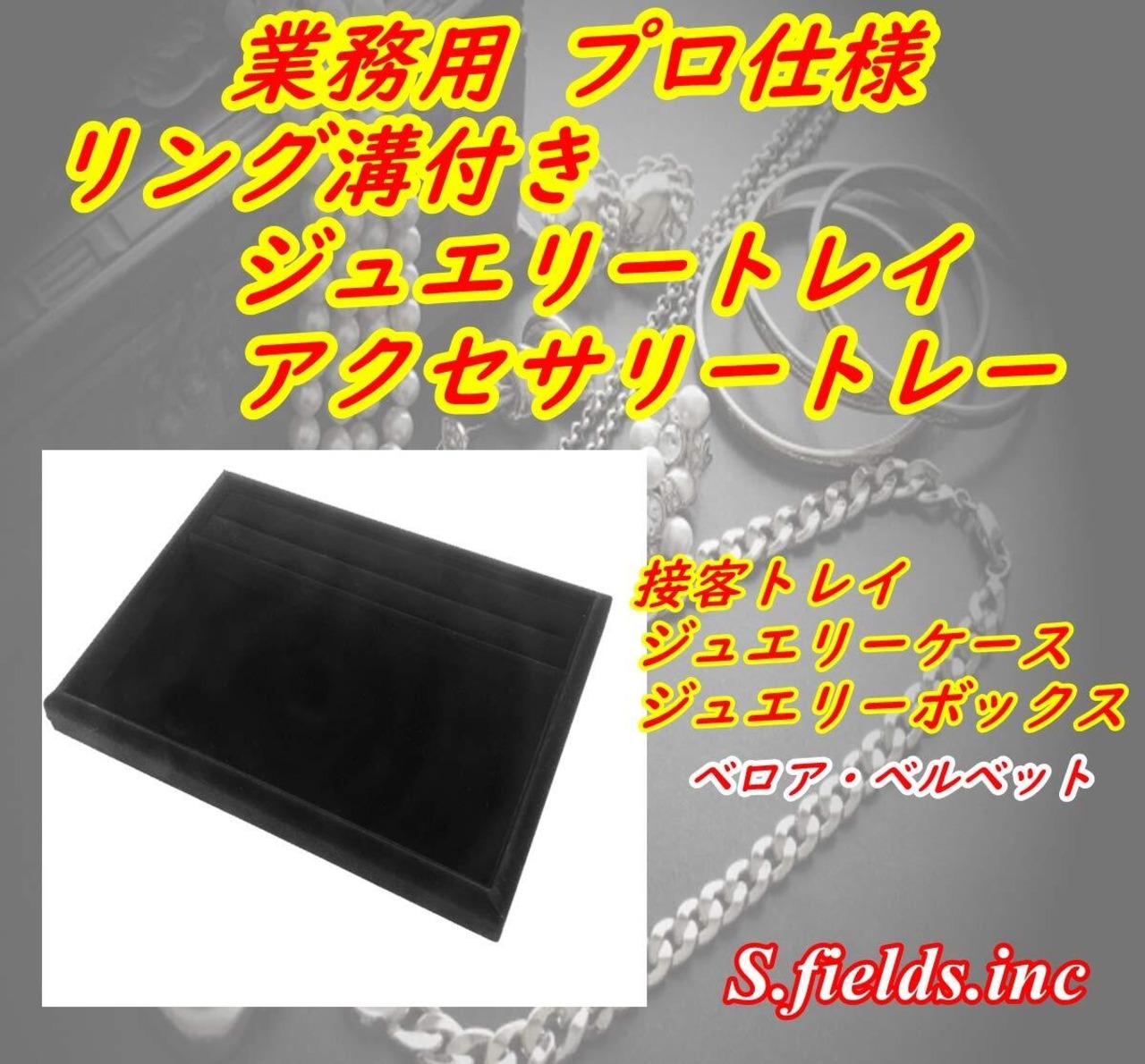 S.fields.inc リング溝付き ジュエリートレイ アクセサリートレー 業務用 接客トレイ ジュエリーケース 収納 プロ仕様 ジュエリーボックス (ベロア ブラック)