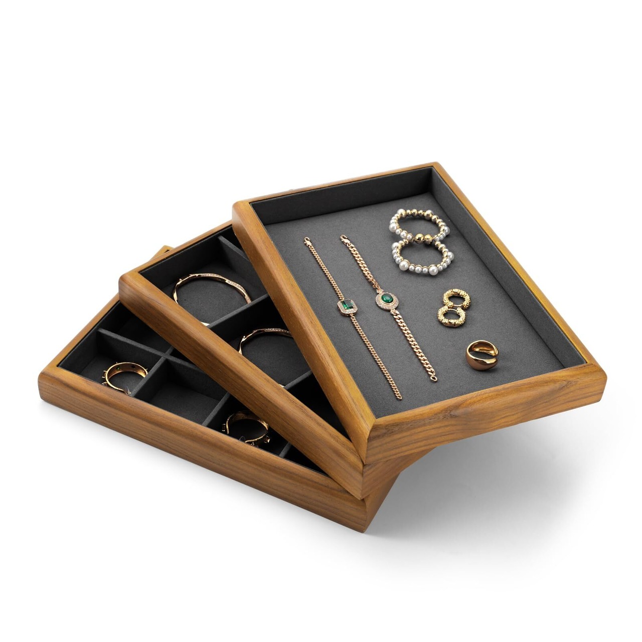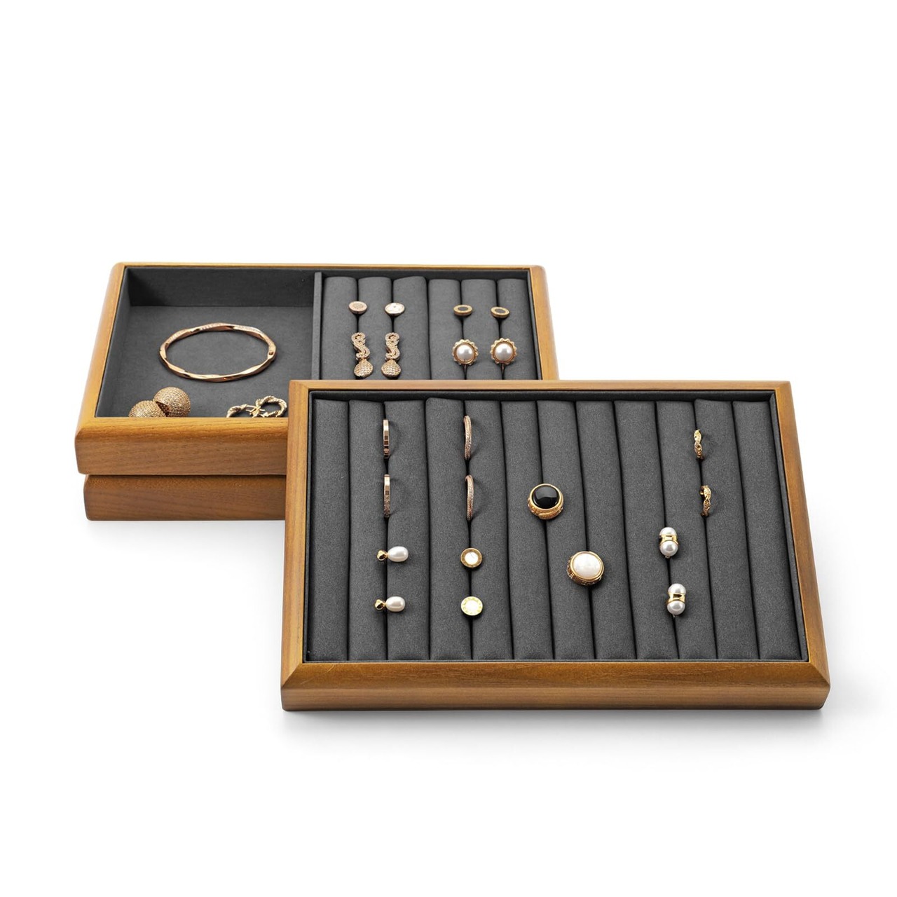 Oirlv ジュエリートレイ 木製 指輪 腕時計 ブレスレット ディスプレイ 収納 高級 おしゃれ 適格請求書に対応 P18104 (ダークグレー)