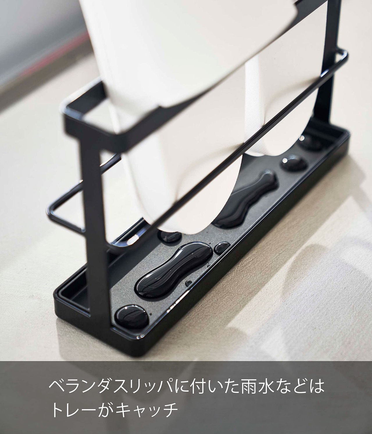 ベランダスリッパに付いた雨水等もトレーがキャッチするので室内でも使用できます。