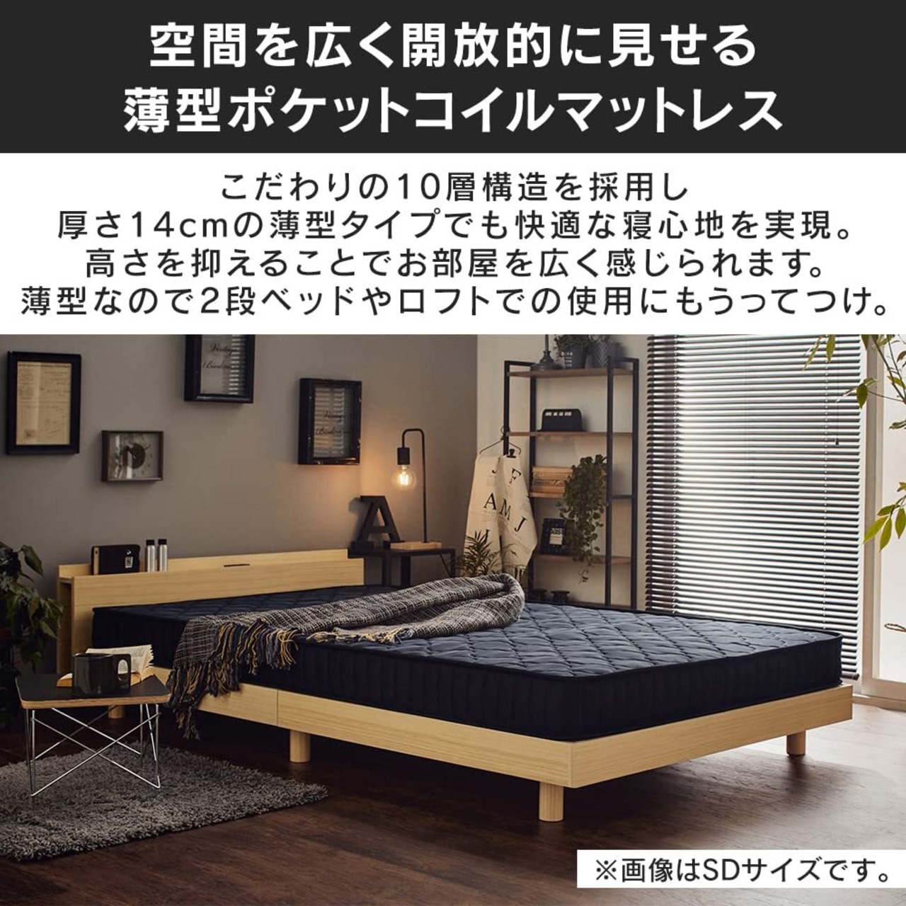 厚み14cmのポケットコイルマットレスです。