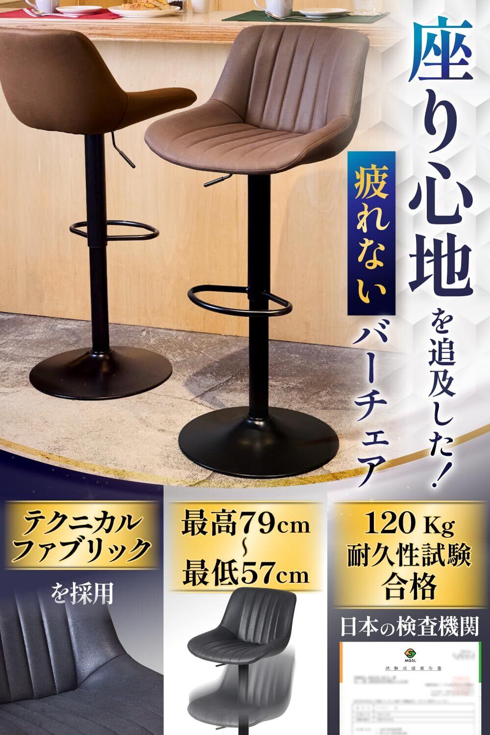 【数量限定】カウンターチェア 【インテリア雑誌掲載】 昇降式 1脚 2脚 おしゃれ バーチェア ブラック グレー ブラウン mugenbo (ブラウン 2脚セット)