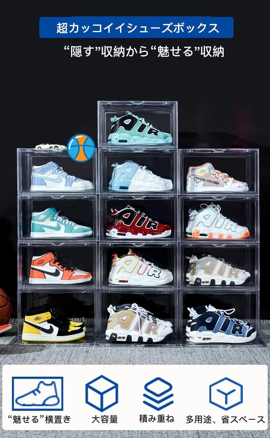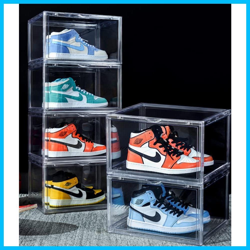 【超カッコイイディスプレイ】横に置くデザインで、靴の横顔は一目然です、ディスプレイ感覚で並べることができます。自慢のシューズ、有名ブランドのコレクション、限定シューズなどをおしゃれに収納できます。サイズ長36cm×横幅28cm×高さ22cm、サイズJP30までのスニーカーを簡単に収納できます。