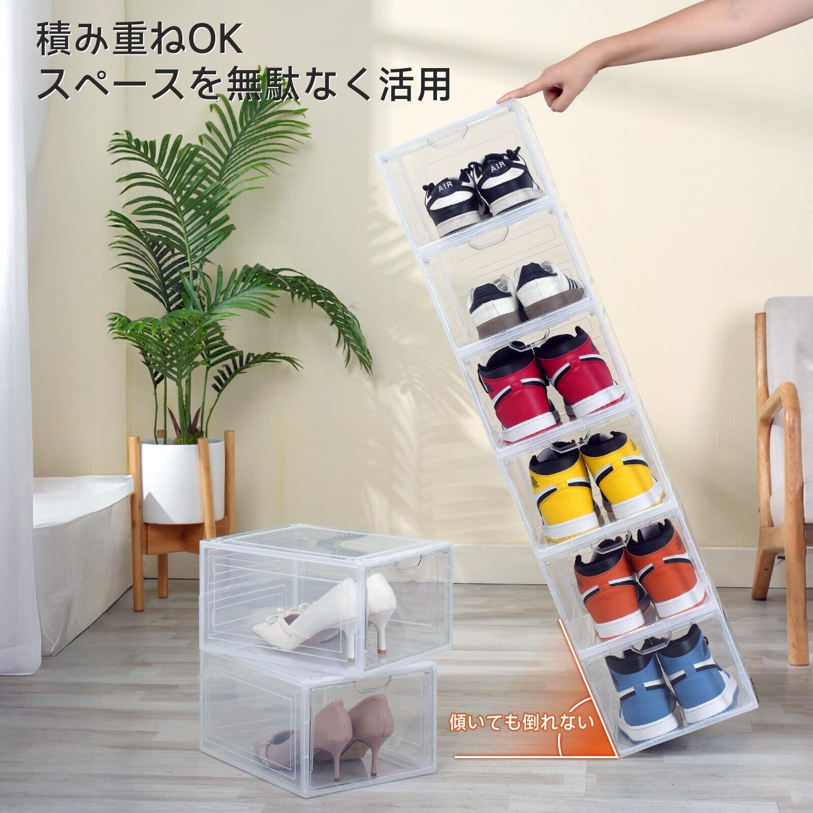 ASAHIKI シューズボックス 靴箱 スニーカーボックス 透明 シューズケース 大容量 前開きドア 磁石開閉 防水 防塵 防汚 積み重ね可能 靴収納ボックス 省スペース 簡単組立 説明書付き 多用途 ディスプレイボックス 小物入れ 化粧品収納 スニーカーケース 6個 セット(トランスペアレント)