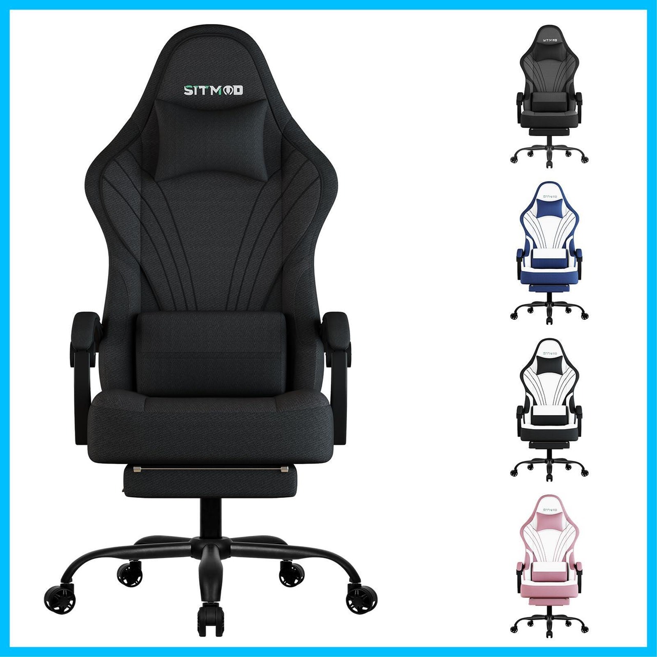 ゲーミングチェア、人間工学に基づいた設計、ヘッドレスト・ランバーサポート付きオフィスチェア、高さ調節可能通気性ファブリック、360度回転椅子、リクライニング機能付きpcチェア・デスクチェア オフィスチェア, ブラック