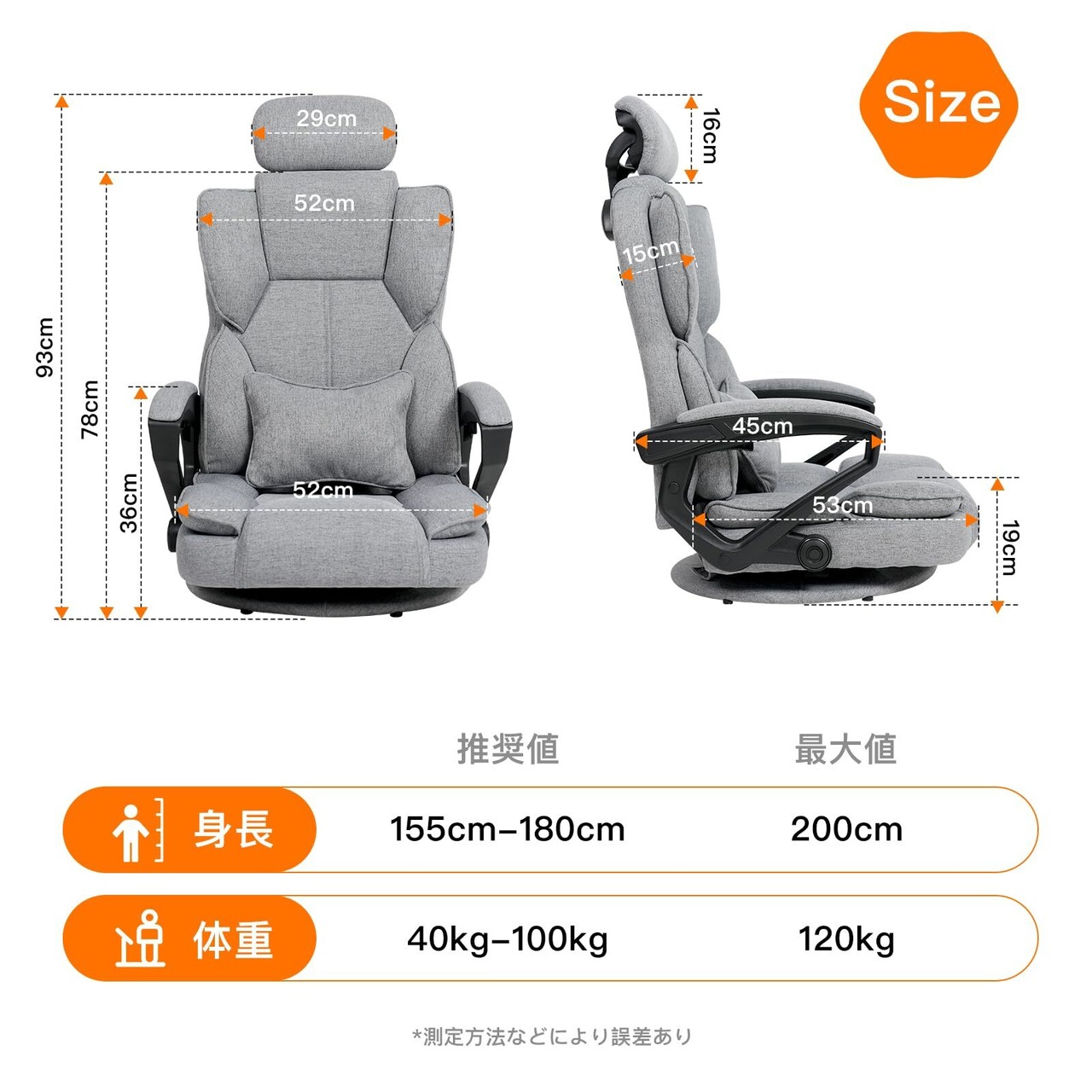 【在庫処分】SeekFun ゲーミングチェア ゲーミング座椅子 360°回転 腰痛対策 ハイバック ヘッドレスト デスクチェア ランバーサポート ひじ掛け付き 150°リクライニング チェア LX-19SW (ファブリック, グレー)