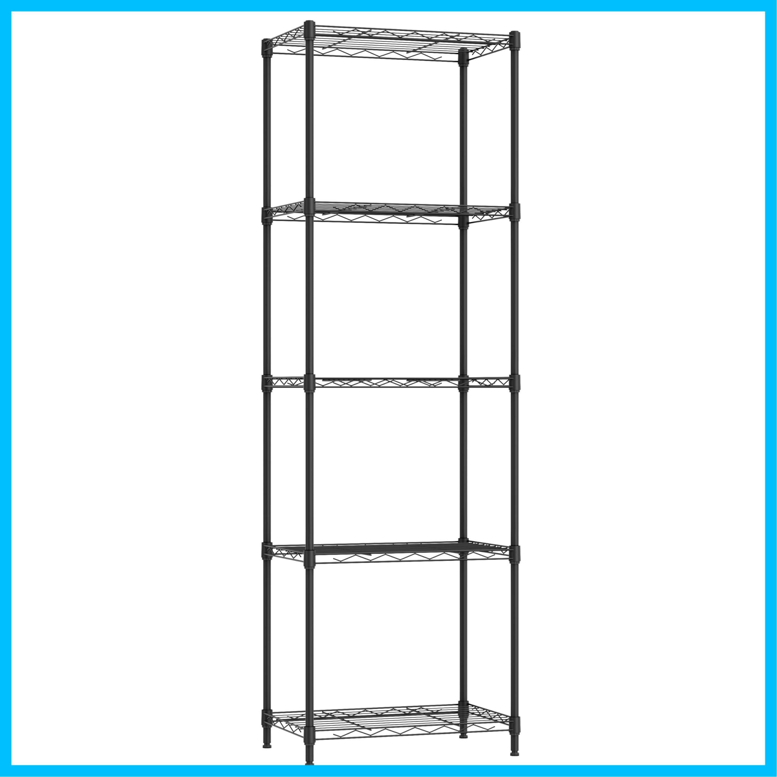 IZEUK スチールラック 5段 メッシュ 収納棚 防錆加工 パイプ棚 スリム ポール径15.9mm パーツ対応 全体耐荷重kg 幅45×奥行30×高さ139.6cm 頑丈 ワイヤーシェルフ メタルラック オシャレでかわいい 業務用/玄関/リビング/リビング/ランドリー/浴室/キッチン アジャスター ブラック