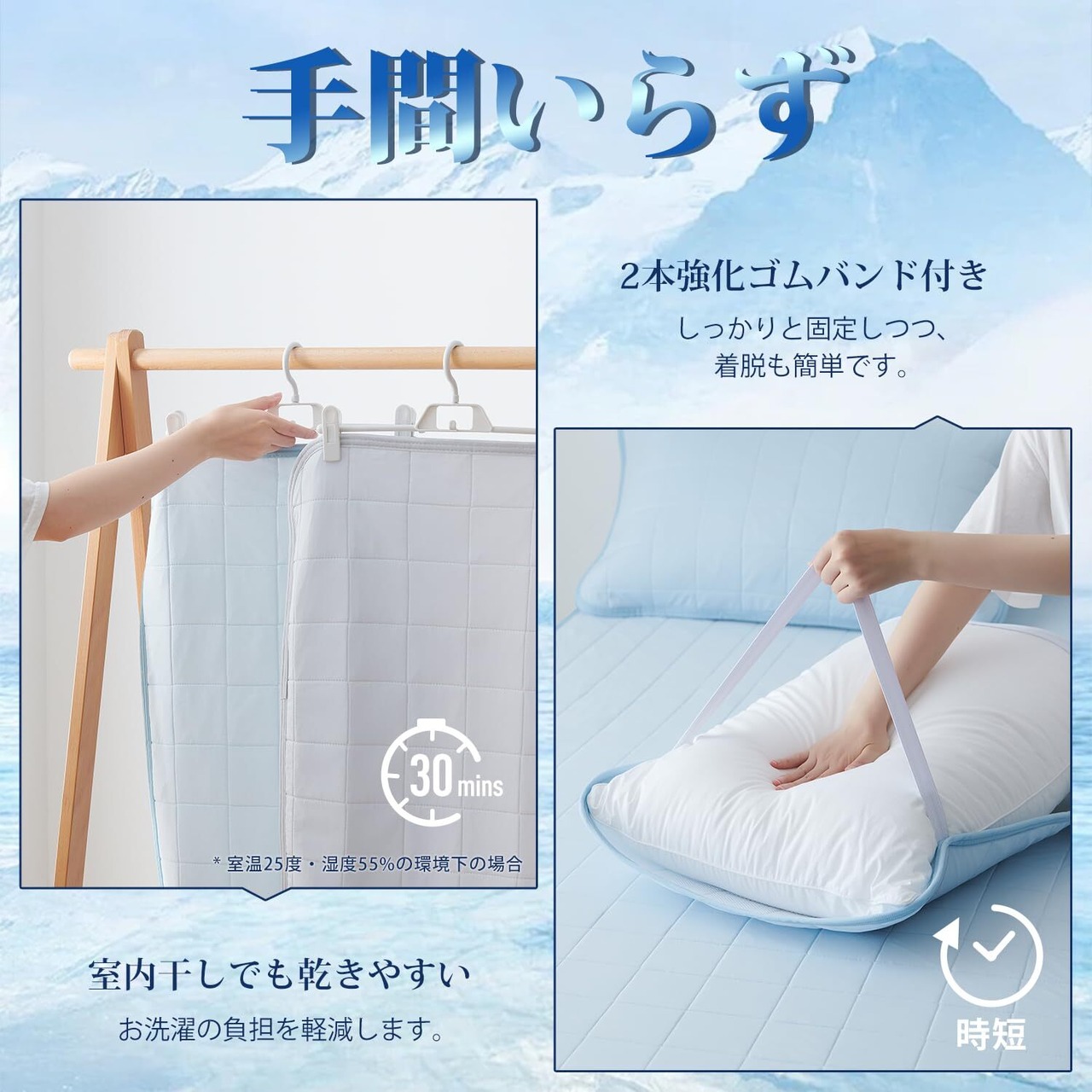 ❆【丸洗いOK】ナイロンは汚れが落ちやすく、ポリエステルは水に強い特徴があるので、汗ばむ夏には、枕パッドを洗濯機ですぐに丸洗い可能です。(洗濯ネットに入れて単独洗い)