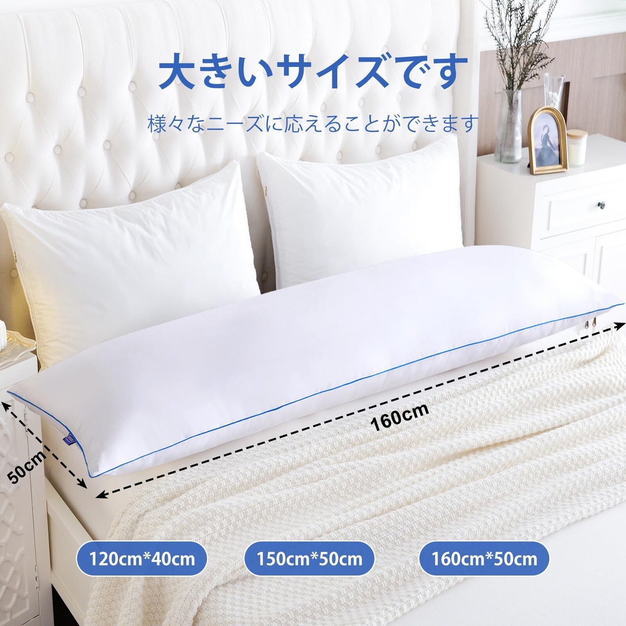 【160×50cmの大型抱き枕】安眠・横向き寝に最適!高密度3D粒綿を採用した等身大サイズ(160×50cm)で、横向き寝時の腰や肩の負担を軽減。ふわふわの肌触りと適度な弾力が、安定した快眠をサポートします。