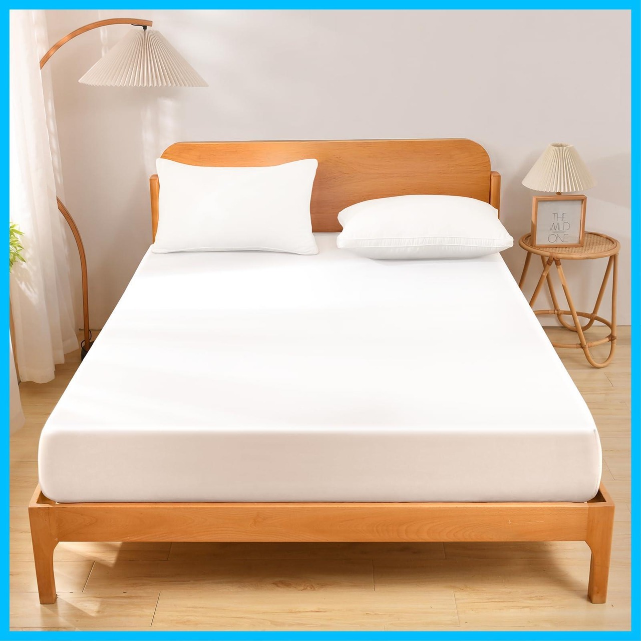 【在庫セール】ボックスシーツ ベッドシーツ 吸水速乾 マットレスカバー シングル セミダブル ダブル クイーン 全周ゴム付き 厚さ5~30cmまで対応 ズレ防止 抗菌防臭 寝汗対策 安眠 通気性 丸洗い可能 赤ちゃん 大人用 オールシーズン (ホワイト, シングル 100*200cm)