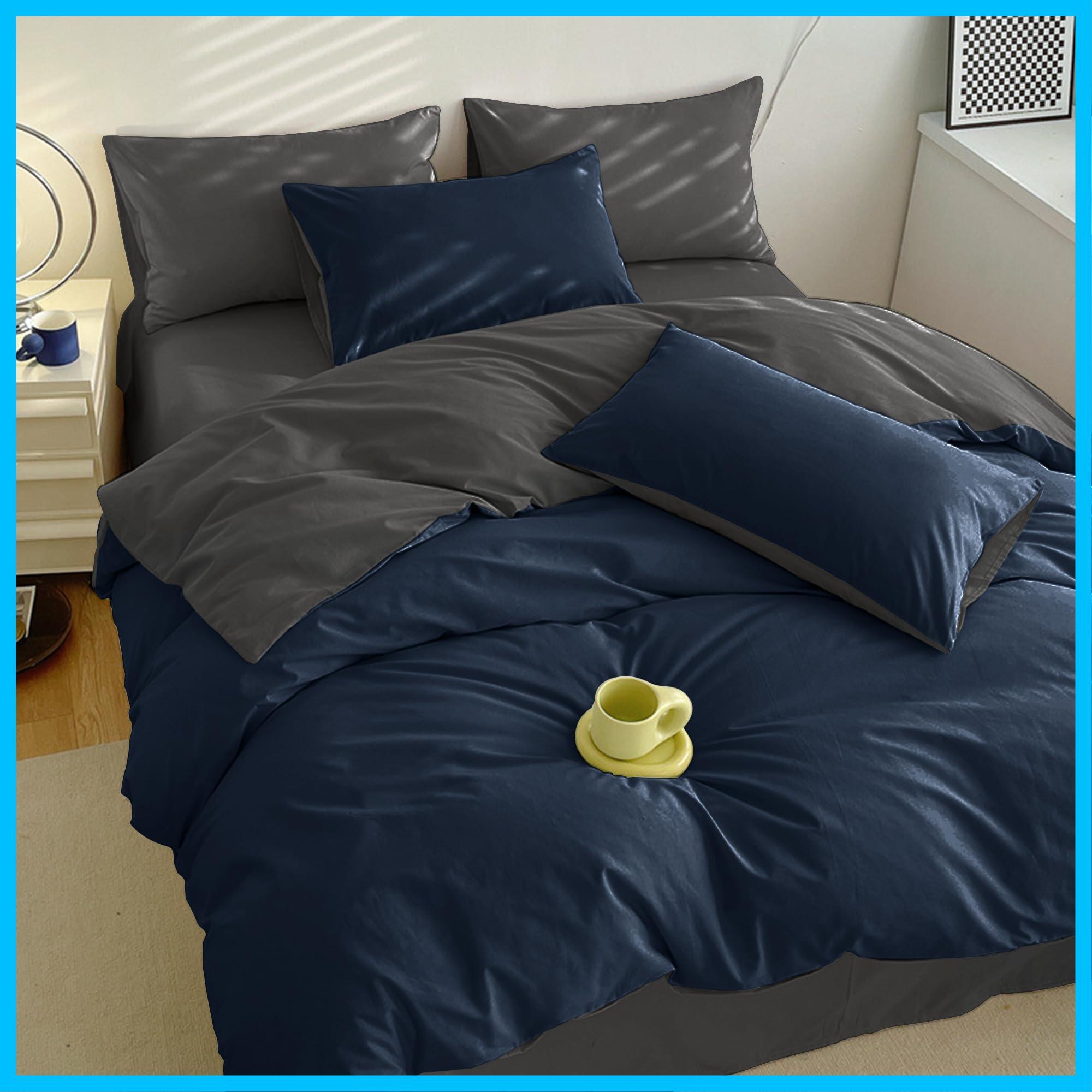 布団カバーセット 寝具カバーセット DPEAN 洗いざらし シワ加工 水洗い やわらか 洋式・和式兼用 掛け布団カバー ボックスシーツ 枕カバー吸水速乾 丸洗いOK 肌に優しい 無地 シンプル オールシーズン(ネイビー+ダークグレー,シングル・3点セット)