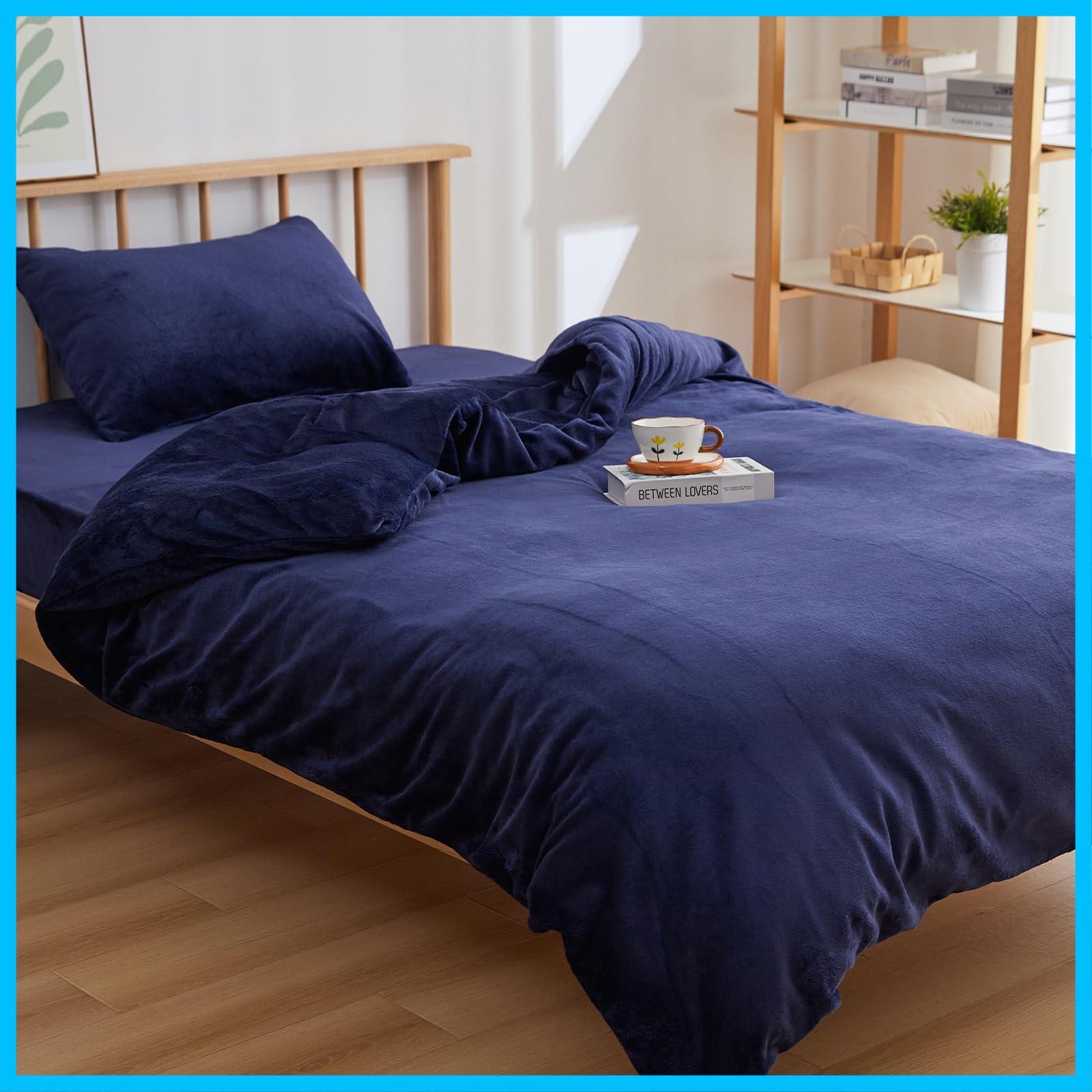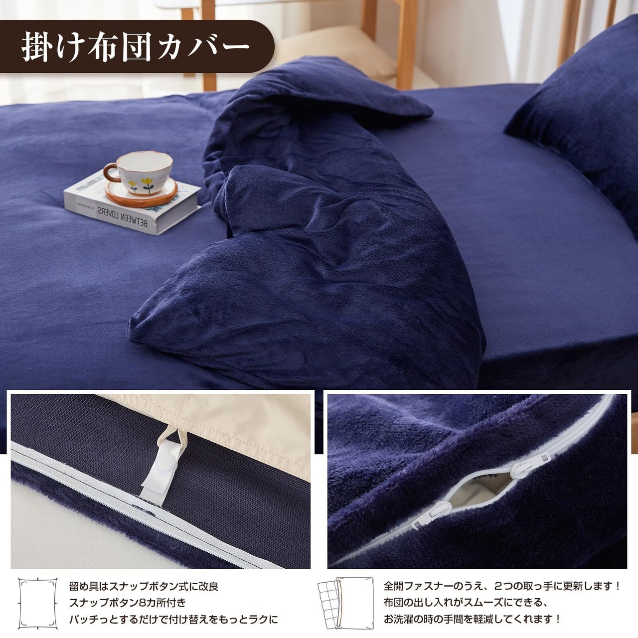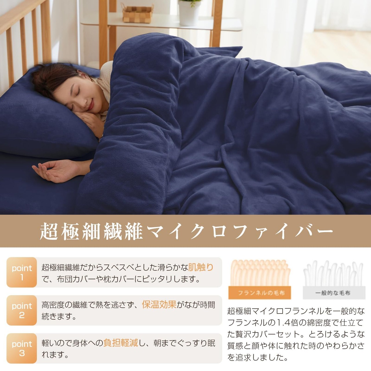 寝具カバーセット フランネル生地 布団カバー 掛け布団カバー ファスナー仕様 ボックスシーツ 全周ゴム付き 枕カバー 合わせ式 ベッドシーツ 敷き布団カバー 洋式・和式兼用 洗い替え用 カバーセット あったか マイクロファイバー フランネル 洗える 発熱 保温 静電気防止 丸洗いOK 冬 ネイビー シングル(3点セット)