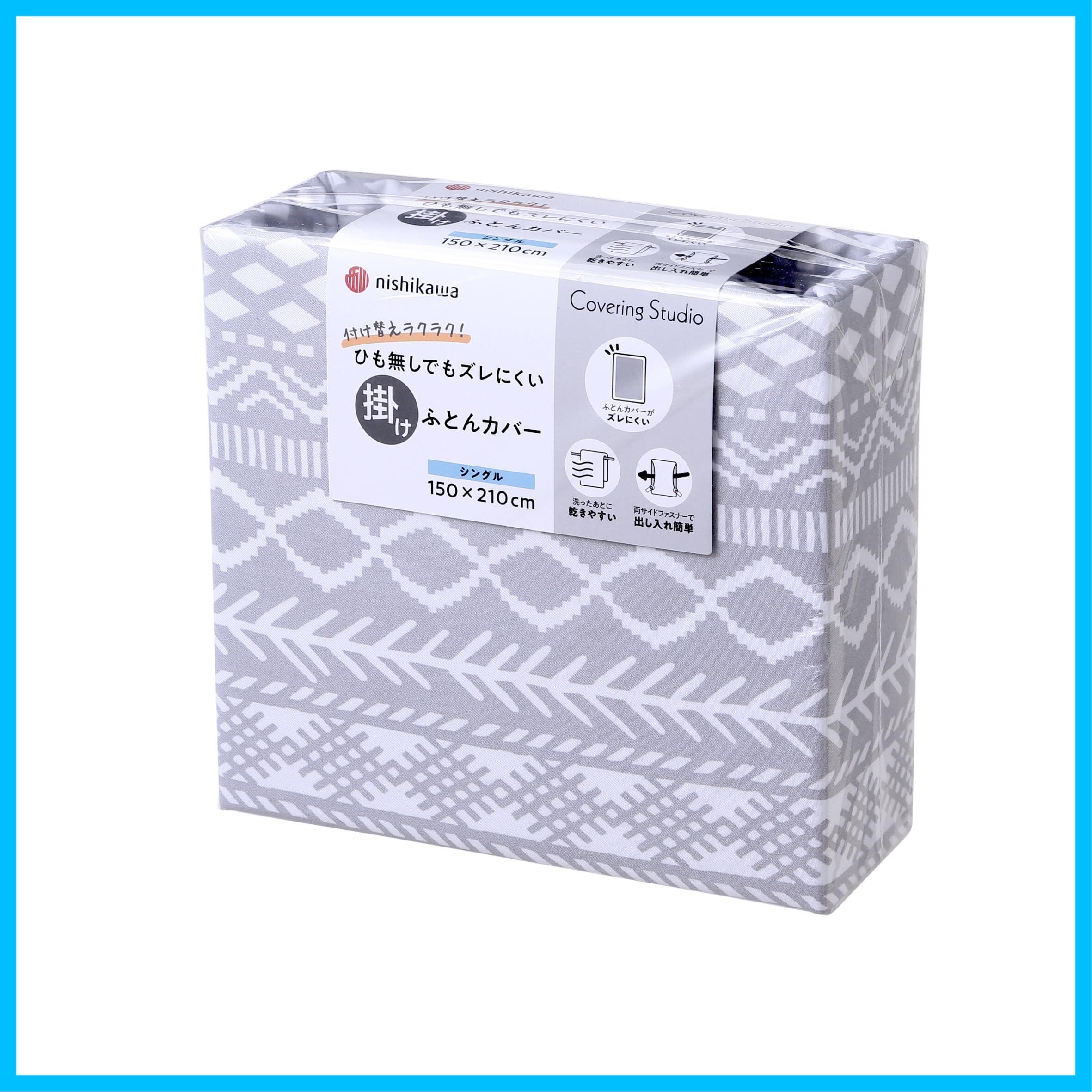 nishikawa【西川】 掛け布団カバー シングル 洗える 布団がズレにくくなる加⼯ ヒモ無し 両サイドファスナーでふとんの出し⼊れ 簡単 時短 カバーリングスタジオ CT4006 グレー PI04300061