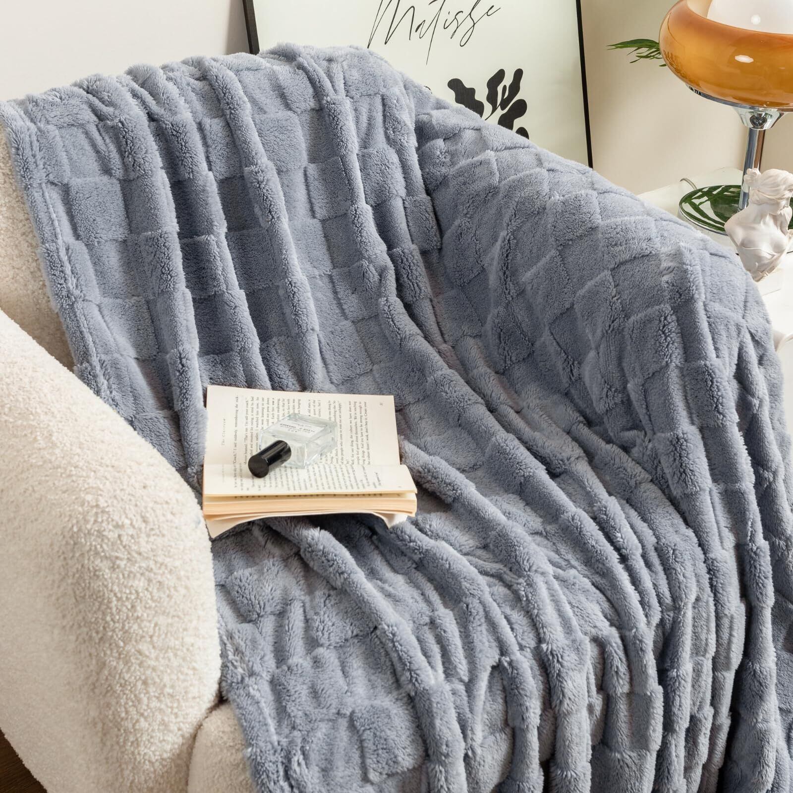 Mokoya 毛布 クイーン 200x230cm おしゃれ ブランケット チェック柄 もこもこ フリース 暖かい 掛け毛布 柔らかい 通年使用 Blanket (グレー)