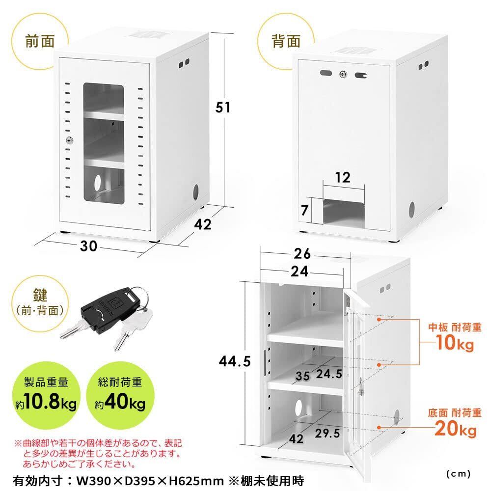 【アクリルパネルで中身が見える】高さ51cm、幅30cmの小型サイズです。前面・背面共に鍵付きでセキュリティ万全。前面扉、背面パネルを取り外して色々な機器を置くことも可能です。