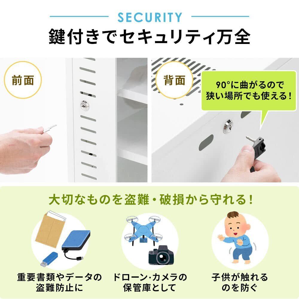 【仕様】製品カラー:ホワイト サイズ:W300×D420×H510mm 重量:約10.8kg 耐荷重:総耐荷重約40kg(中棚10kg・底板20kg) 出荷形態:組立式(※アジャスター取付のみ) 材質:スチール(エポキシ樹脂粉体塗装) 付属品:棚板×2枚、棚板フック×8個、鍵(前扉用)×1本、鍵(バックパネル用)×1本 取扱説明書:日本語取扱説明書あり