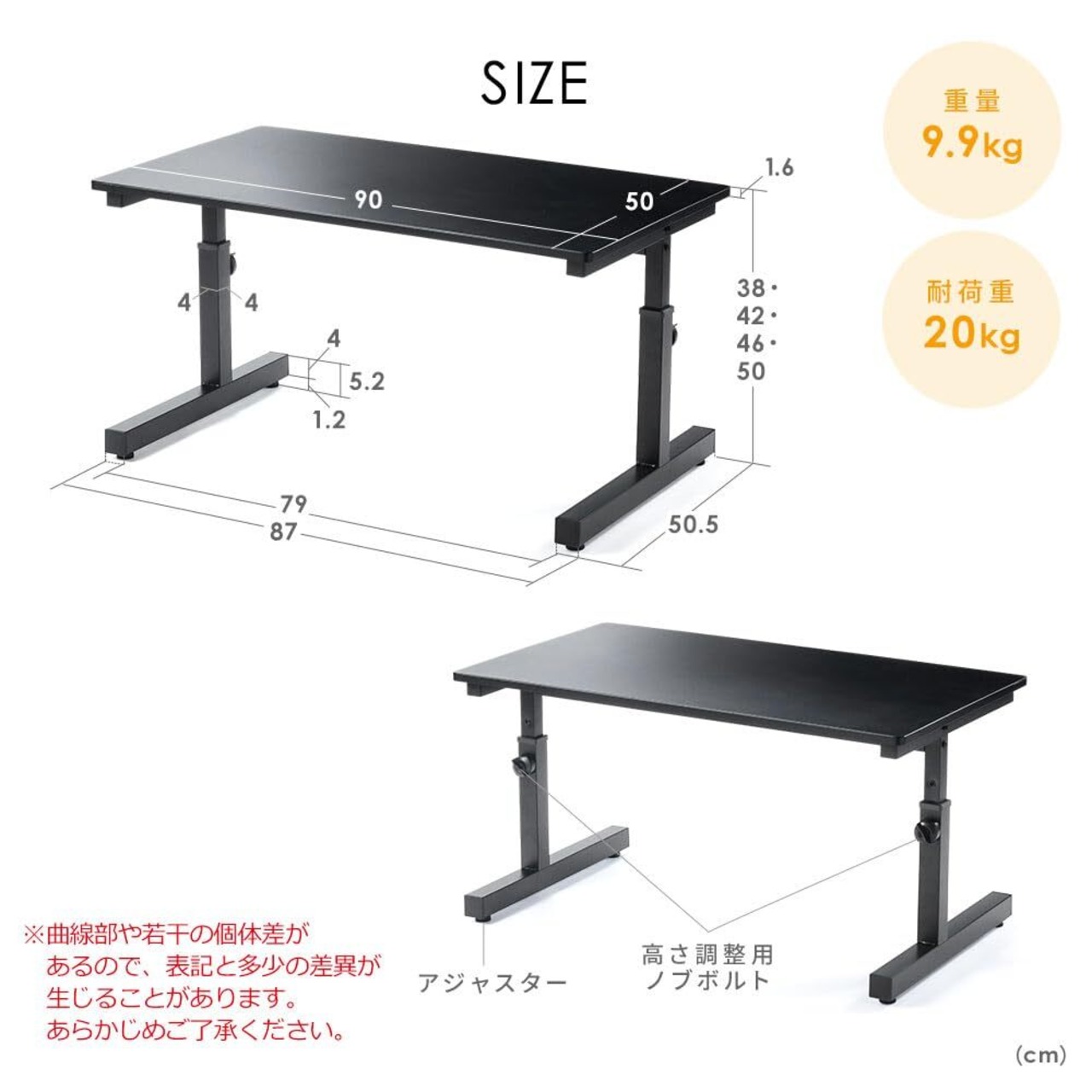 【サイズ】 カラー:天板部/ブラック、フレーム部/ブラック サイズ:約W900×D505×H380・420・460・500mm 重量:約9.9kg 総耐荷重:20kg
