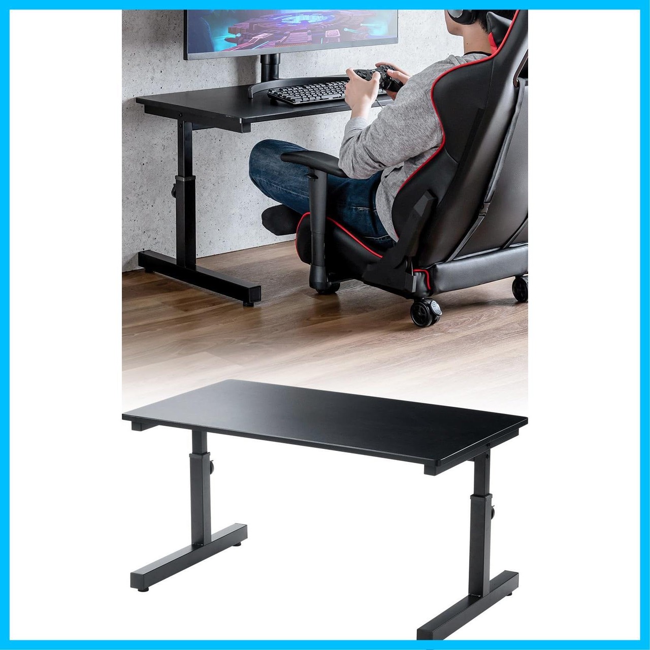 イーサプライ ローデスク 高さ調整 4段階 38~50cm 幅90cm 奥行50cm 木製 テレワーク 昇降式 ゲーミング パソコン ブラック EEX-DKL02BK