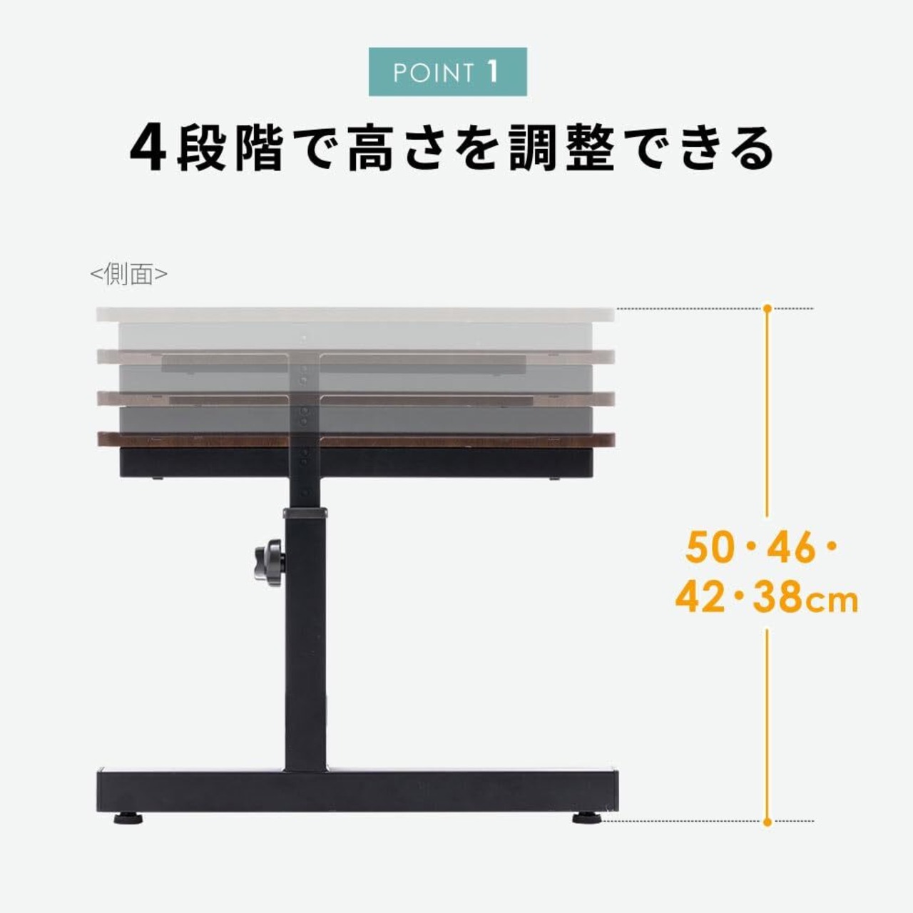 【強度が高いデスク】耐荷重20kgで物を支えます。ガタつきを軽減するアジャスター付きです。
