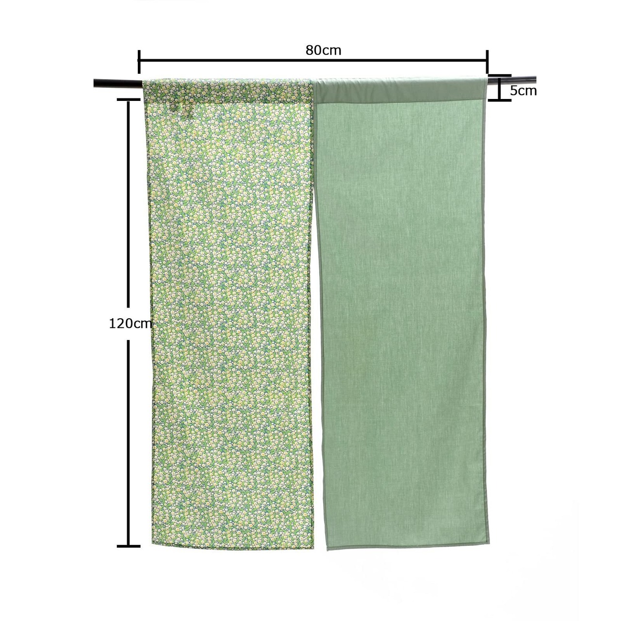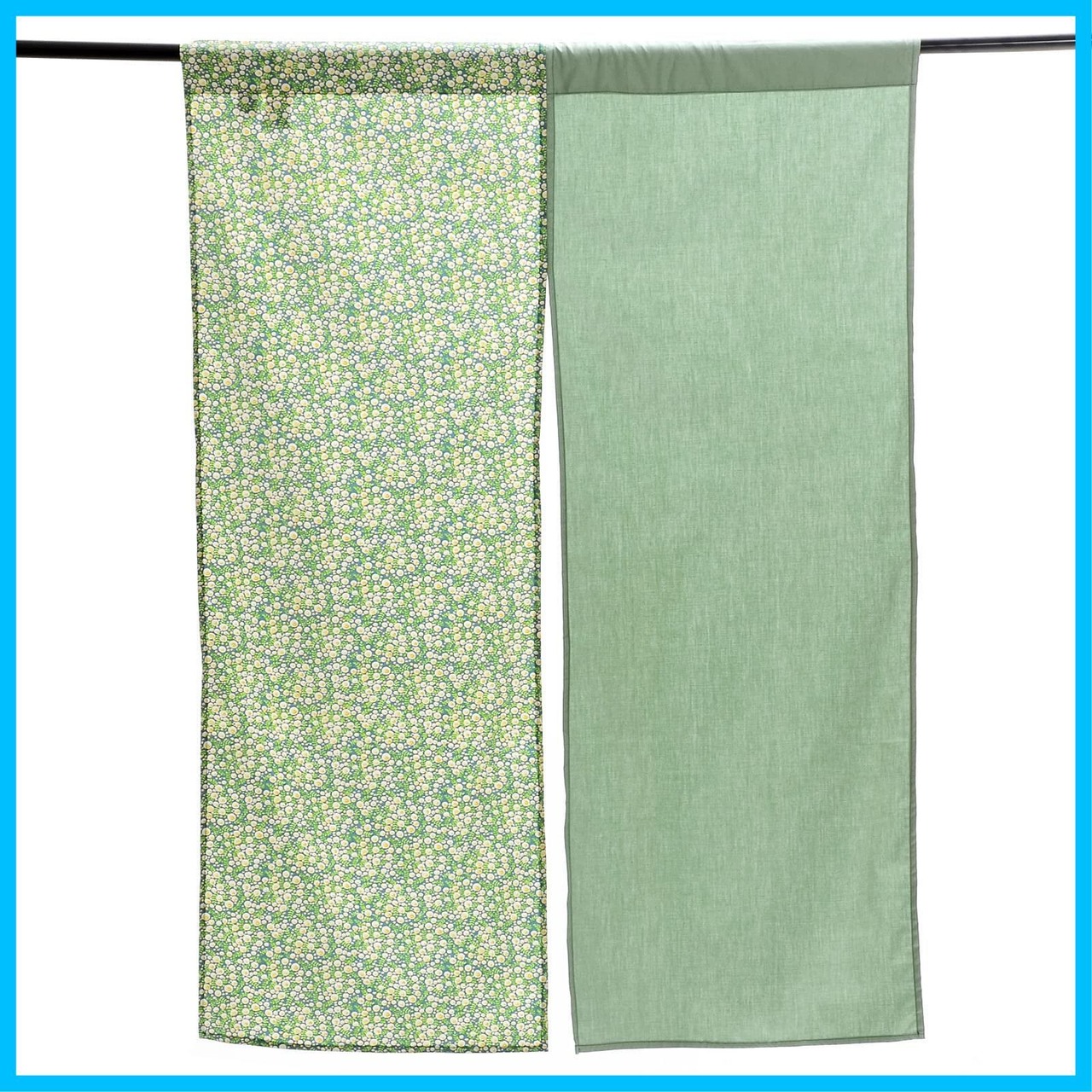 Kuai のれん 暖簾 薄手 幅85cm 丈90cm、120cm、150cm ナチュラル アースカラー 花柄 目隠し ロング キッチン リビング インテリア 遮熱 間仕切り 飲食店 カーテン おしゃれ ツーカラー グリーン (ツーカラーグリーン, 120)
