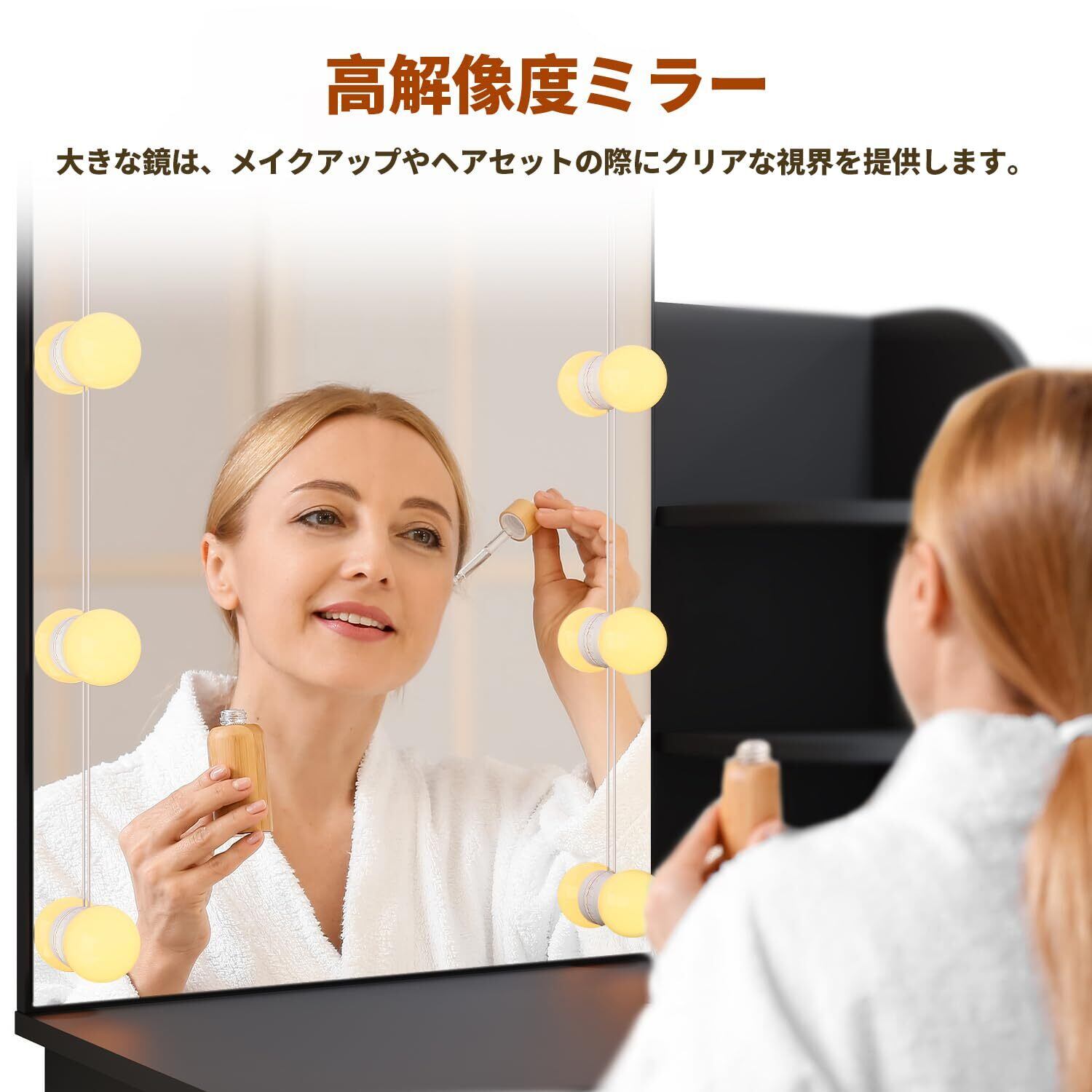 Hoomuway ドレッサー LEDライト付き セット テーブル 鏡台 ホワイト 収納 パソコンデスク 化粧台 メイク 机 鏡 ミラー