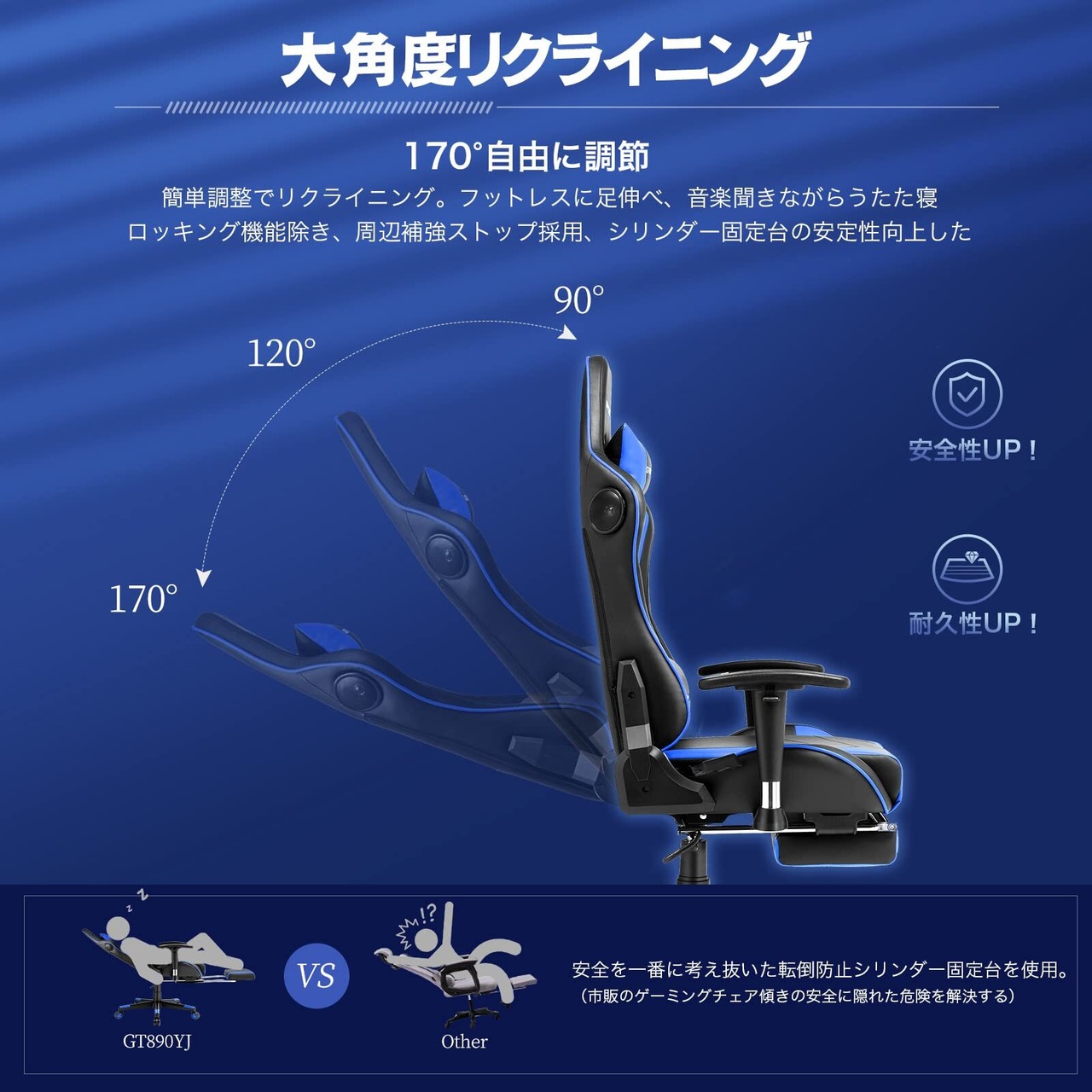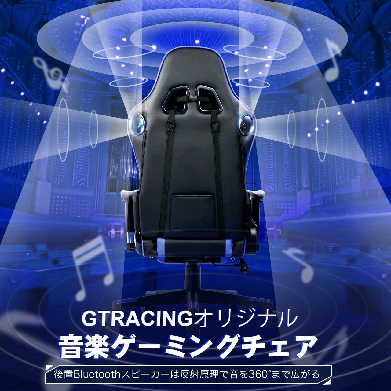 【在庫セール】GTRacing ゲーミングチェア オットマン スピーカー付き ゲームチェア ゲーム用チェア オフィスチェア フットレスト デスクチェア リクライニング パソコンチェア ハイバック 調節可能ランバーサポートPUレザー 「別途購入のgtracing USBアダプタでチェアはPS4/PC/SWITCHとの相性が良く ブルー GT890MF-BLUE