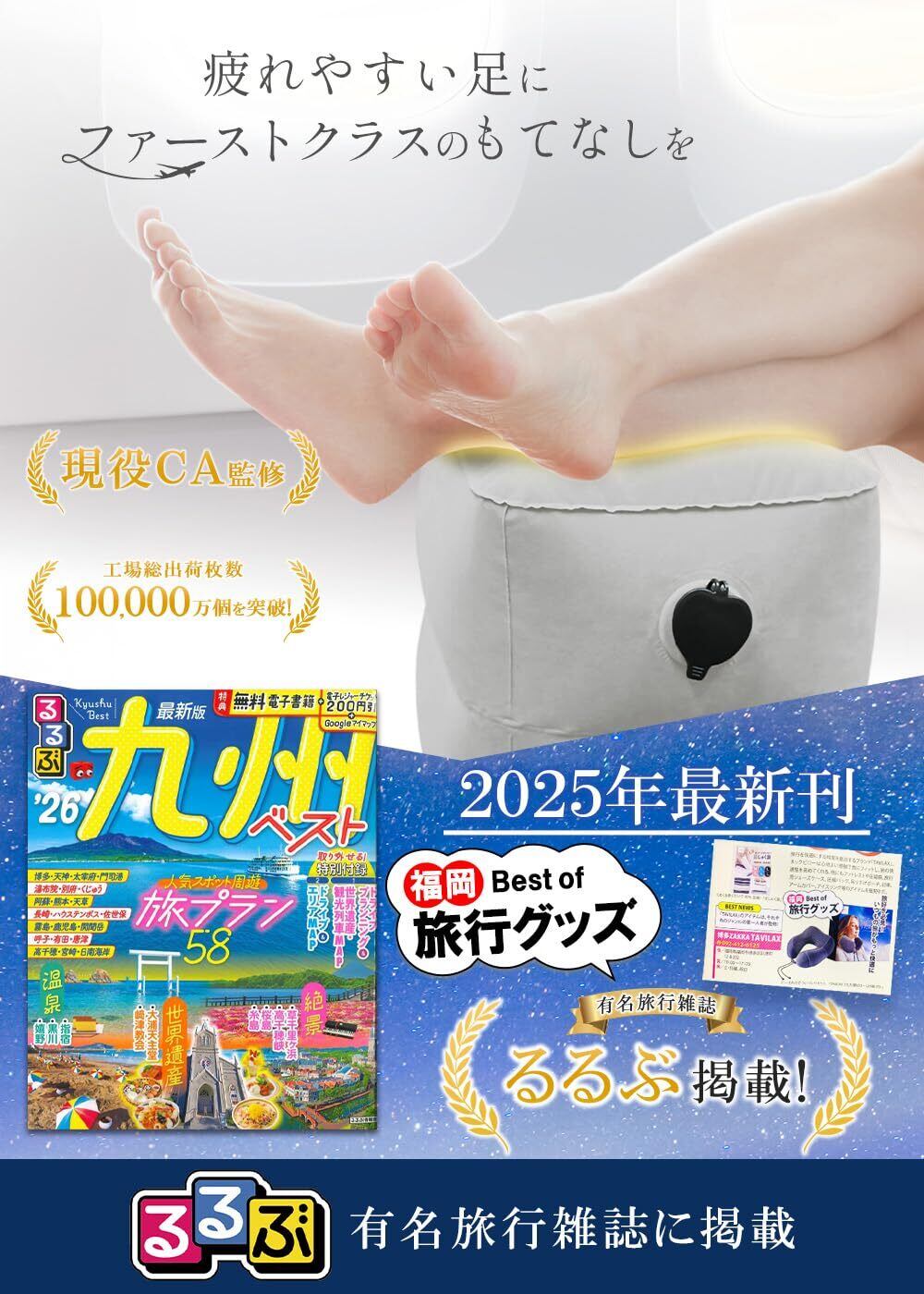 【現役CA監修のフットレスト】 機内の過ごし方のプロとも言えるCAが監修するフットレストだからこそ、ベストなエアークッションに仕上がりました。飛行機内での空間がより一層に楽しい思い出となるよう座席で心地よく過ごせる設計にこだわりました。エコノミー症候群 予防グッズとしてもご好評をいただいております。国内旅行 海外旅行問わずご使用可能です。