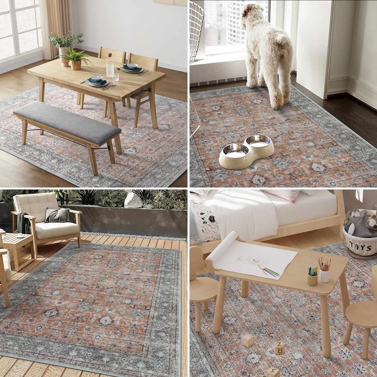 HAOCOO ラグ 洗える 90×150cm ホットカーペット対応 ペルシャ風 ラグマット 1畳 ふわふわ おしゃれ オールシーズン適用 滑り止め 防ダニ 防臭 軽量 防音マット 室内用 チェアマット ダイニングマット アンティーク 花柄