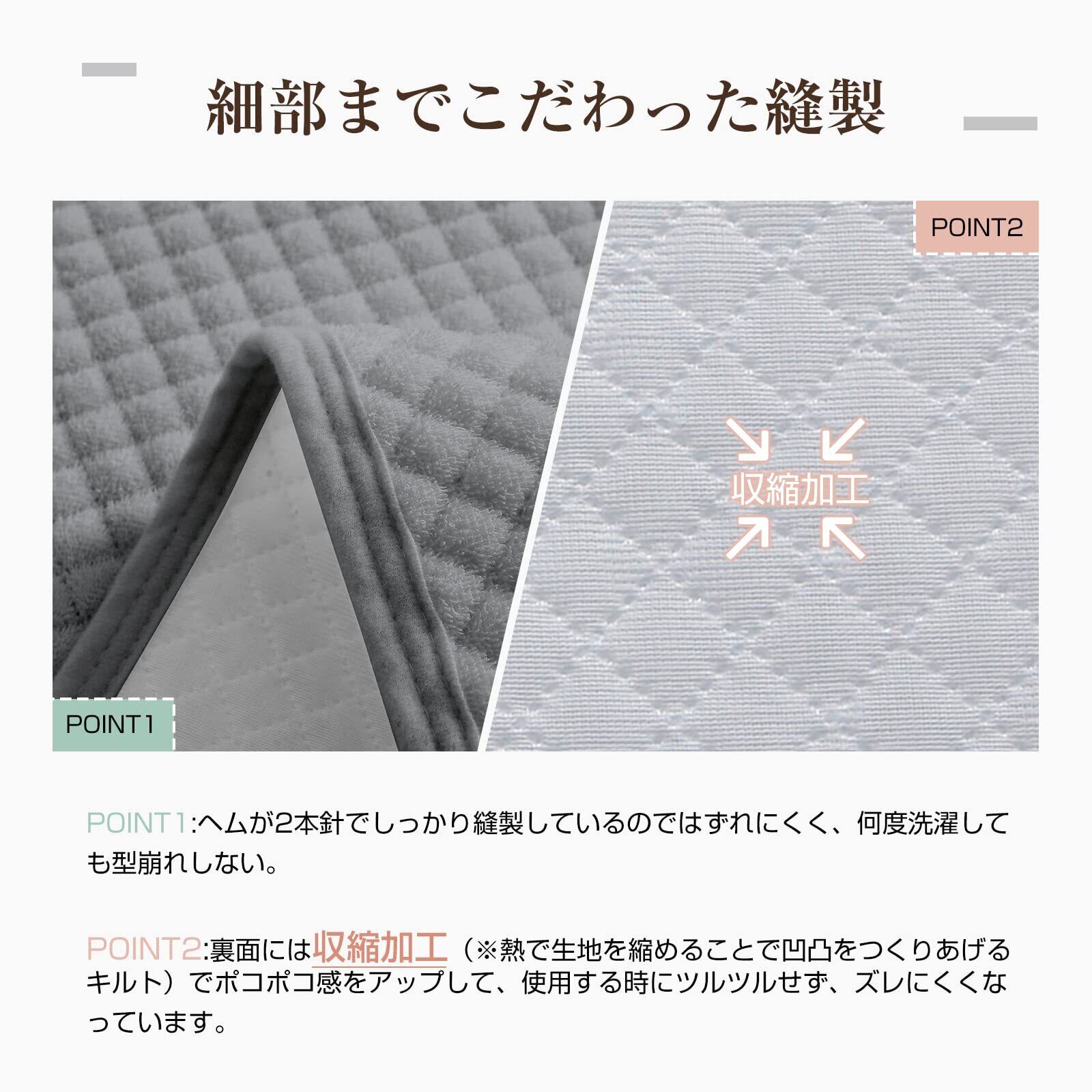 【Keusnixおすすめスタイル】本商品の裏面には一般的な細かいキルトをしているものとは異なり、収縮加工(※熱で生地を縮めることで凹凸をつくりあげるキルト)をかけることで、敷き布団、ベッドマットでツルツル滑ることがございません。また、細かいキルトでポコポコの小さな山をつくって、体との密着を防ぎ通気性があり快適です。※タオル地の敷きパッドは冬でも使える反面、真夏はどうしても暑く感じてしまいます。そんな時期はエアコンとの併用をおすすめします。