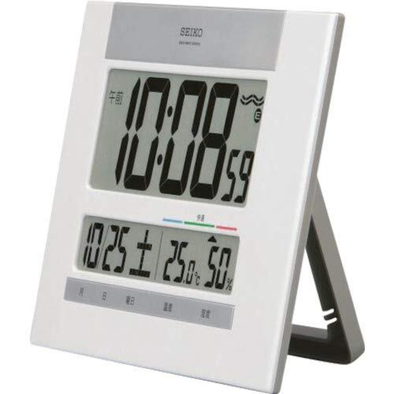 セイコークロック 掛け時計 置き時計 兼用 電波 デジタル カレンダー 快適度 温度 湿度 表示 薄型 白 パール SQ429W