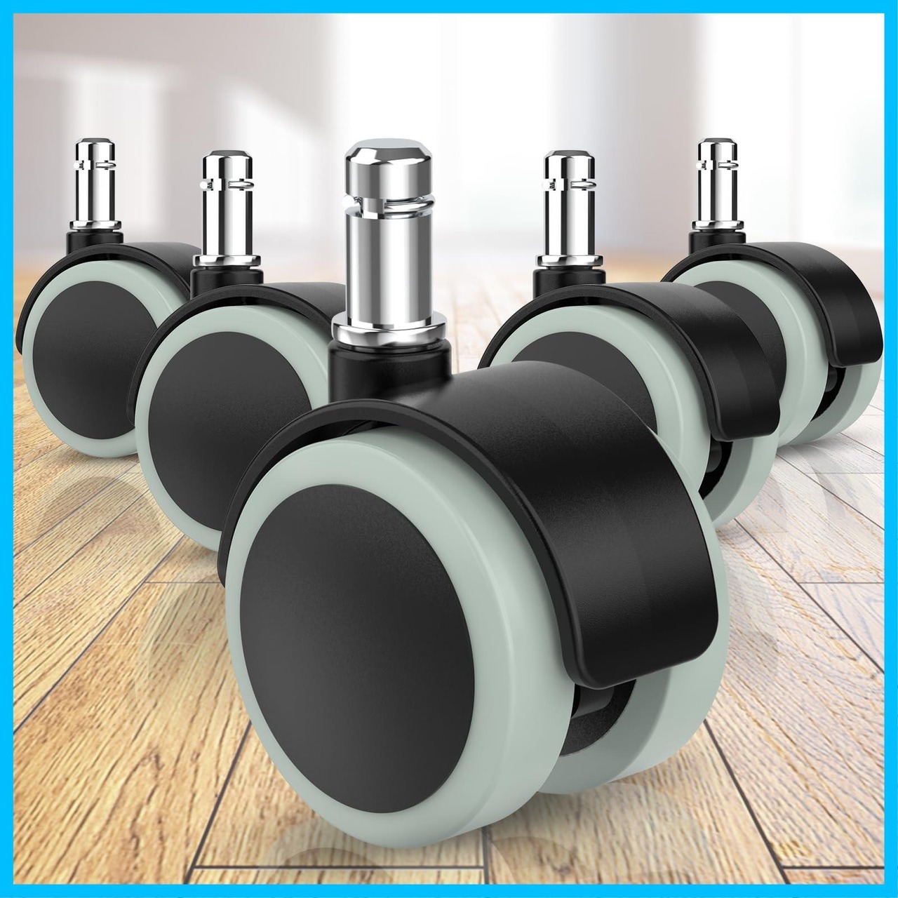 椅子 キャスター、ウレタンキャスター(5点セット)強化素材 高耐荷重 シャフトサイズ11MMX22MM OAオフィスチェア・ゲーミングチェア用 椅子 キャスター 交換,床にキズつきにくい、静音型、木材やタイルなど床に適用 (グレー)
