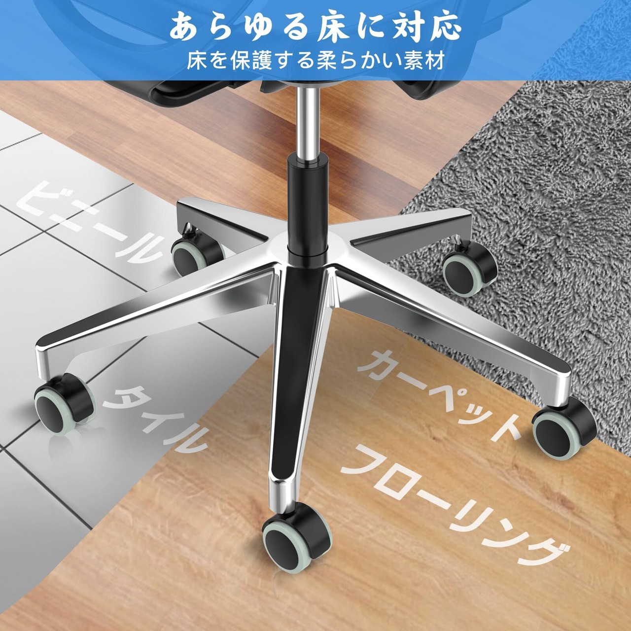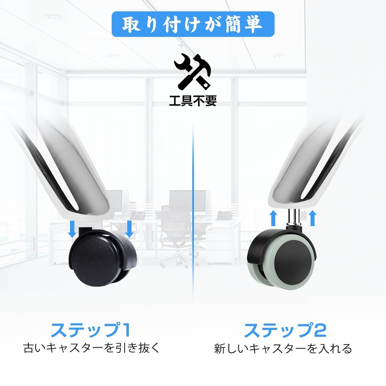 【静音性と保護性】椅子 キャスターは衝撃を吸収するポリウレタン製で、他の人の邪魔にならず、静かにスムーズに滑ります。 それだけでなく、柔らかいポリウレタン製のキャスター替えは、ハードウッド、カーペット、タイルなどの床にも使用でき、傷のない使用感を提供し、床をより良く保護します。