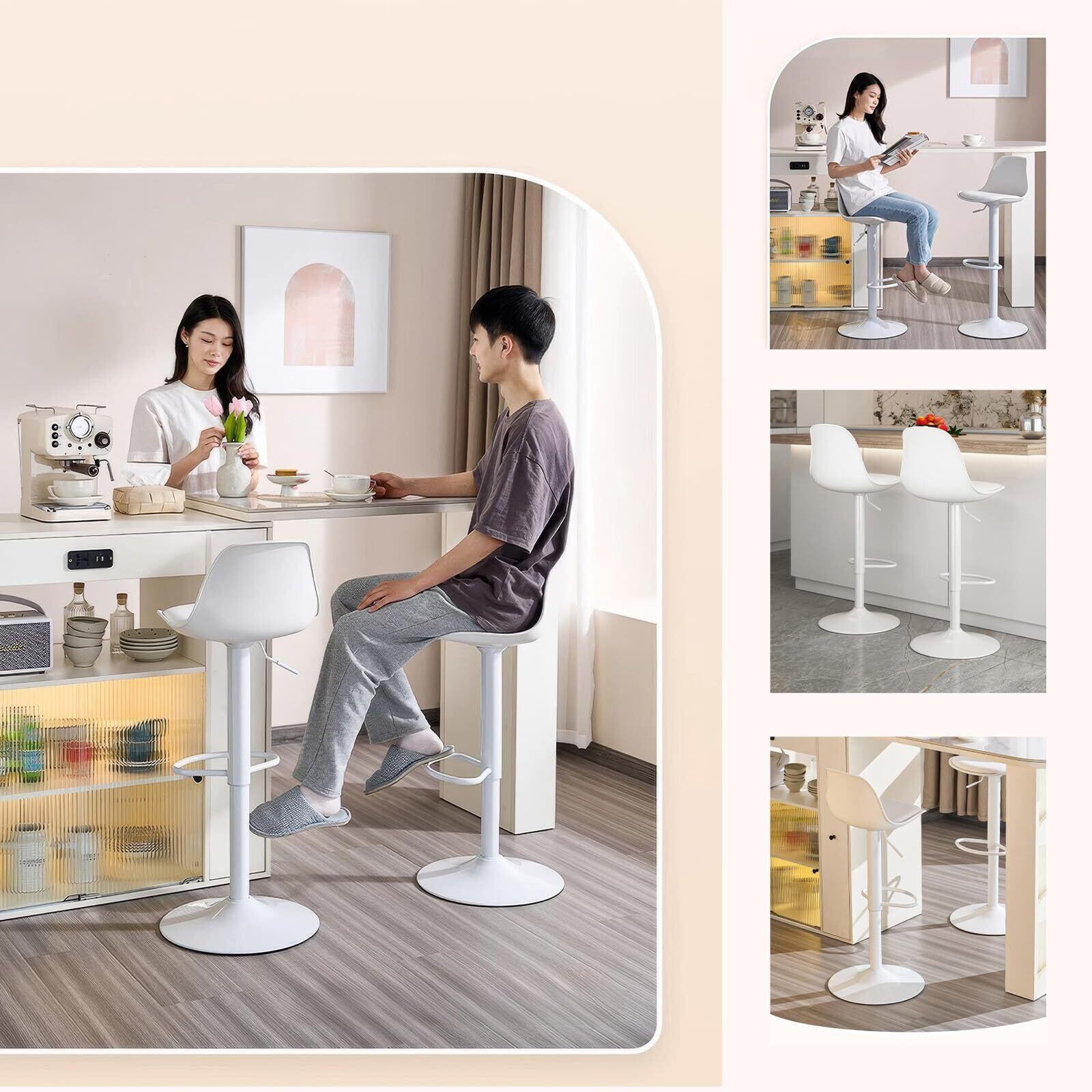 Lasola カウンターチェア 回転 昇降式 バーチェア PUレザー ハイチェア 背もたれ バースツール ダイニングチェア キッチン 回転椅子 ハイスツール 足置き 高さ調節可能 キッチンカウンターチェア 2脚セット (ホワイト)