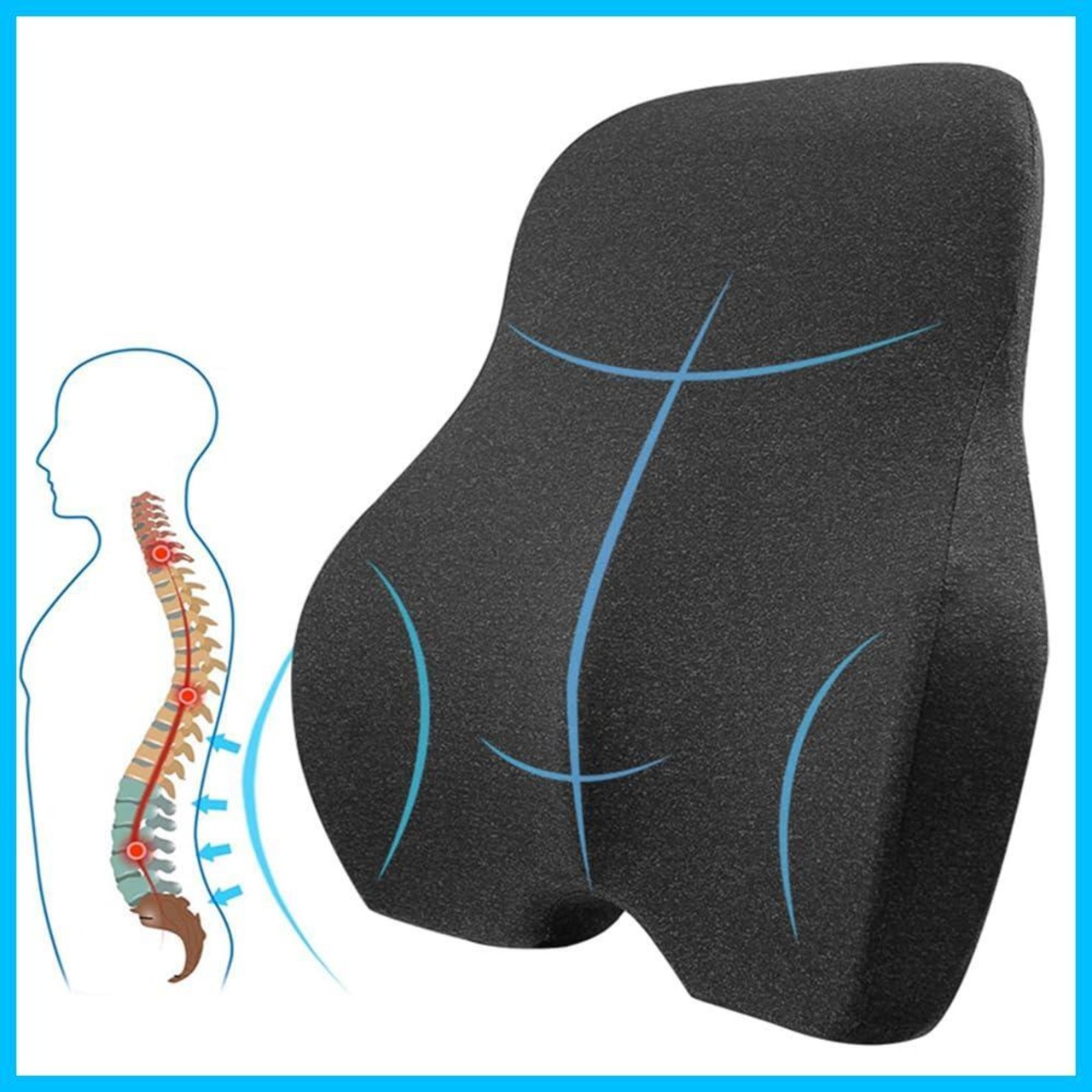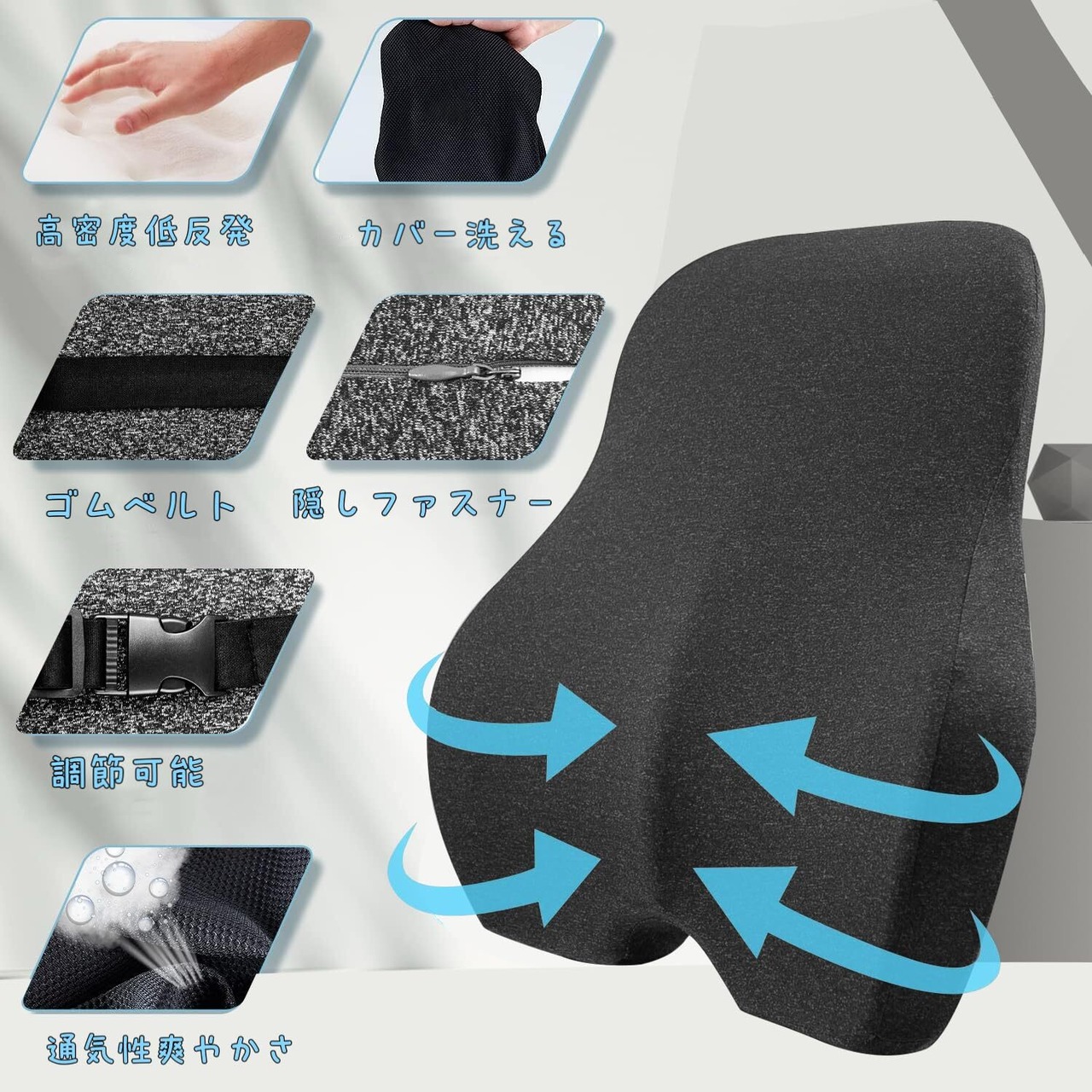 Vtesey 腰痛 クッション 低反発 ランバーサポート 車/オフィス椅子用 シートクッション 腰痛改善グッズ 腰枕 人間工学 腰当て 背もたれクッション 高密度クリア 取付バンド調節可能 通気性 カバー洗える (ブラック)
