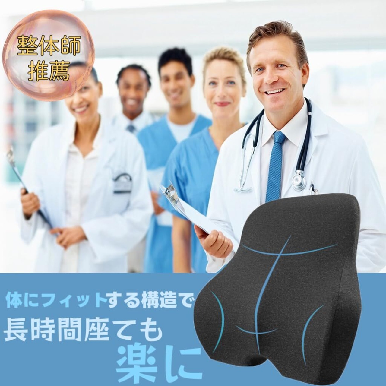 【整体師監修デザイン】 Vtesey腰痛クッションのデザインは人体の背中の曲線にぴったりフィットし、美しさと機能性を両立して、自然に腰部にフィットし、腰の姿勢を整えて、まっすぐな状態を保つのをサポートします。腰痛クッションは適度な硬さとサイズ感で背中をしっかり支え、不良姿勢の改善を促しながら、腰の健康を総合的に守ります。体圧分散により背中全体への負担を減らします。