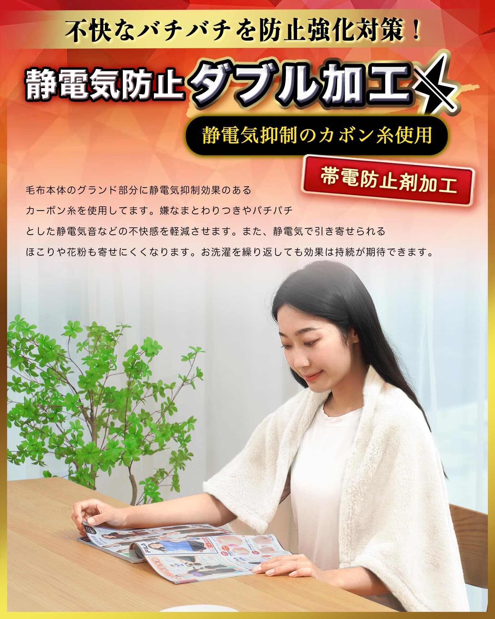 【99%静電気抑制】乾燥する季節は静電気を引き寄せ溜めこんでしまいやすく、冬に使用するマイクロファイバー 毛布が、パチパチッと静電気が走るのは困ったものです。この問題を解決するために、本社の冬用毛布では静電気抑制効果のあるカーボン糸の使用と、加工処理に静電剤を導入する二重の抑制方法を実施したとのことです。これにより、静電気を大幅に抑制できるため、まとわりつきや不快な音の軽減が期待できます。また、静電気で引き寄せられるほこりや花粉の付着も軽減されるそうです。お洗濯を繰り返しても、その効果は持続するとのことです。