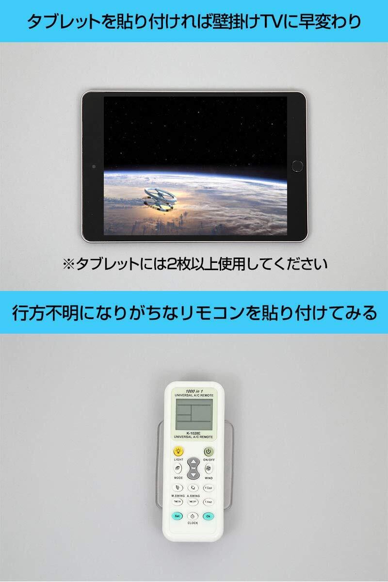 【例えばこんな使いかたができます】 スマホを車内に貼ってカーナビ代わりにする スマホを車載カメラに 自撮りや動画配信に アクションカメラのマウントとして お気に入りのステーショナリーをデスクに貼りつける 失くしやすいリモコンを壁に貼る タブレットを壁に貼り付けて壁掛けTVに早変わり